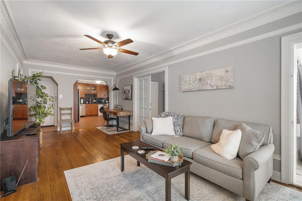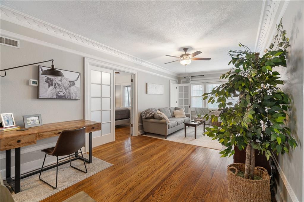 Welcome to this picture-perfect, well-maintained 1-bedroom, 1-bath condo in the historic Eugene Field building, right in the heart of the Country Club Plaza. This fully furnished unit is move-in ready, making it a perfect starter home or an ideal second residence. Enjoy the charm of the sunroom just off the bedroom-perfect for morning coffee, a home office, or a cozy reading nook. The layout is both comfortable and functional, with stylish furnishings that make settling in effortless. Located in one of the cities most walkable areas, you'll have shops, dining, and streetcar access just steps from your door. Whether you're looking for convenience, character, or a low-maintenance lifestyle, this condo checks all the boxes. Don't miss the opportunity to own a piece of Plaza living!