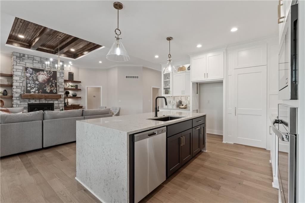 Park Ridge Homes presents theThe Lariat II , a beautifully crafted reverse 1.5-story home in the highly sought-after Park Ridge Manor Community. Designed with both style and function in mind, this 3-bedroom, 3-bath home offers a seamless blend of comfort and sophistication, paired with the ease of maintenance-provided living. Step inside to soaring ceilings with rich wood details and a light-filled open layout that immediately feels like home. The heart of the space is the stunning kitchen, anchored by an oversized waterfall granite island perfect for gathering, entertaining, or everyday living. A thoughtfully designed pantry and beverage area add both beauty and convenience. The main-level primary suite is a true retreat, featuring a statement feature wall, an expansive walk-in closet, and direct access to the laundry room. A secondary bedroom and flex room provide ideal space for guests, work, or hobbies. Downstairs, the walkout lower level is built for entertaining with a spacious rec room, stylish bar area, two additional bedrooms, and ample storage. Enjoy peaceful mornings or relaxed evenings on the covered deck, all while benefiting from a maintenance-provided lifestyle including lawn care, snow removal, and trash PLUS access to Park Ridge Manor’s premier amenities.