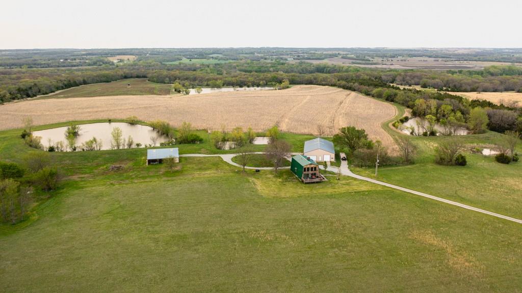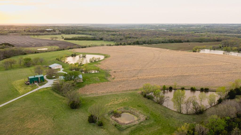 Where the World Gets Quiet - There's a moment, right after you turn off the pavement and wind down the private drive, when it happens. The noise of everything fades. The city, the schedule, and the screen in your pocket. All of it gives way to wind moving through the timber and a hay meadow glowing gold in the afternoon light. This is that place. And there's nothing else quite like it. 78 ac +/- on the southern slopes of the Wakarusa River Valley. 3 ponds totaling more than four acres of surface water hold trophy bass that'll humble you all summer and draw ducks to the decoys all fall. 12 secluded acres of alfalfa work quietly in the background, pulling whitetail and turkey in from the surrounding countryside season after season. Warm-season grasses sway between the cabin and the north timber, and a trail system winds through it all. Tens of thousands of acres in the adjoining Clinton Lake Wildlife Management Area stretch out beyond the property, a near-limitless backyard for the hunter, the hiker, and everyone in between. Deer season. Turkey season. Mushroom season. Bass season. Shed season. This farm runs a full calendar of reasons to be outside. And when the day finally winds down, the rustic details of the A-frame lodge await. Vaulted ceilings soaring over a two-story brick fireplace. Floor-to-ceiling windows keep the outdoors close even after you've sat down. It's the kind of architecture that understands what "living" actually means. Three bedrooms and three full bathrooms offer everything you need, while the fully finished basement gives you room to spread out, host, or simply disappear for a while. Two substantial shops — an 80'x48' and a 48'x16', one with partial concrete floors, electricity, and an abundance of access points handle everything you bring with you: tractors, trucks, boats, ATVs, and all the gear that comes with a life lived outdoors. 15 min from Topeka or Lawrence. 10 min from Clinton Lake. A lifetime from ordinary. Setup your showing today!
