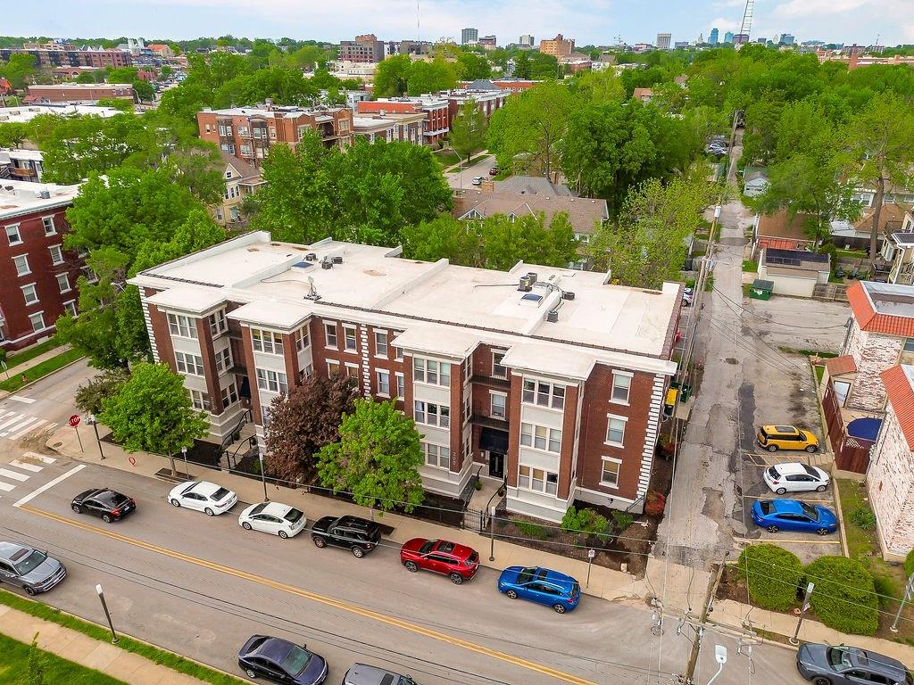 A great condo in a super location! One block to the Art Institute and two blocks from the Streetcar! It is within a short distance from the Plaza restaurants and the Nelson Art Gallery. Close to UMKC and Whole Foods Grocery Store. The Westport entertainment center is within several blocks. This complex has 24 units and is a friendly place to live! One of the residents tends to the garden outside the building and always has a lovely display of seasonal plants. There is a great little patio out front for a sunny breakfast or cocktails with friends. The unit has beautiful hardwood floors and is clean with fresh paint. The monthly condo fee is very reasonable (under $400 monthly) The board is very good about watching expenses. This unit had a new HVAC system installed in 2023. There is a nice view from the windows. This building is dog and cat friendly. Trash collection is on the east side of the building and includes recycling bins. There is a huge fenced in storage area for this unit. The basement also has bike racks. The basement houses a table tennis table, a couple of exercise items and some chairs to relax. This building was renovated in 2006. The seller will provide $500 toward a Home Warranty which will be the buyer's choice of warranty. Come take a look and enjoy the location for the many amenities in the urban core and a great place to live.