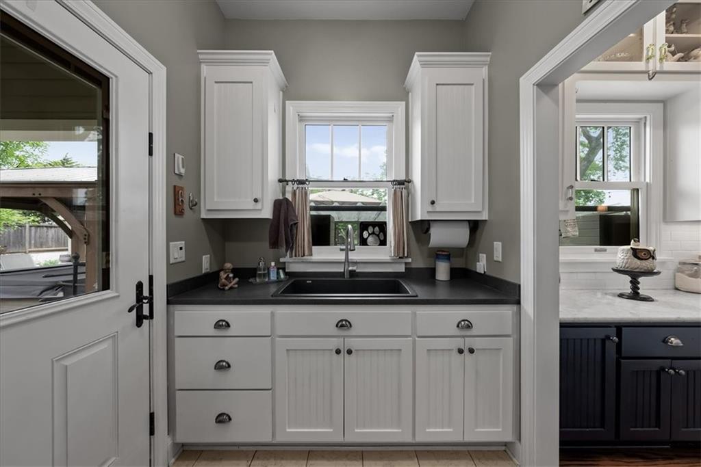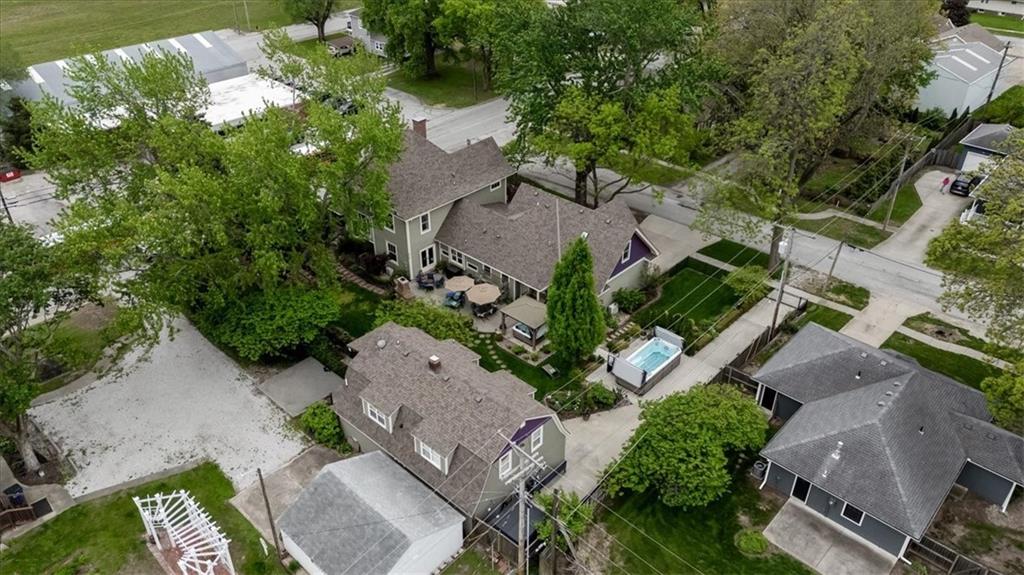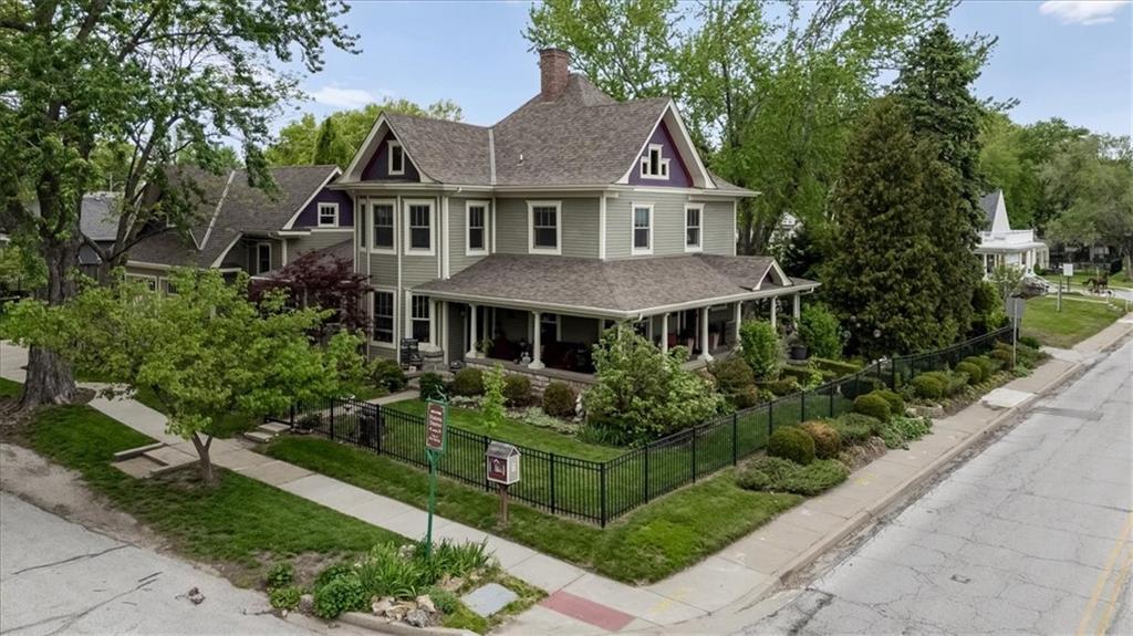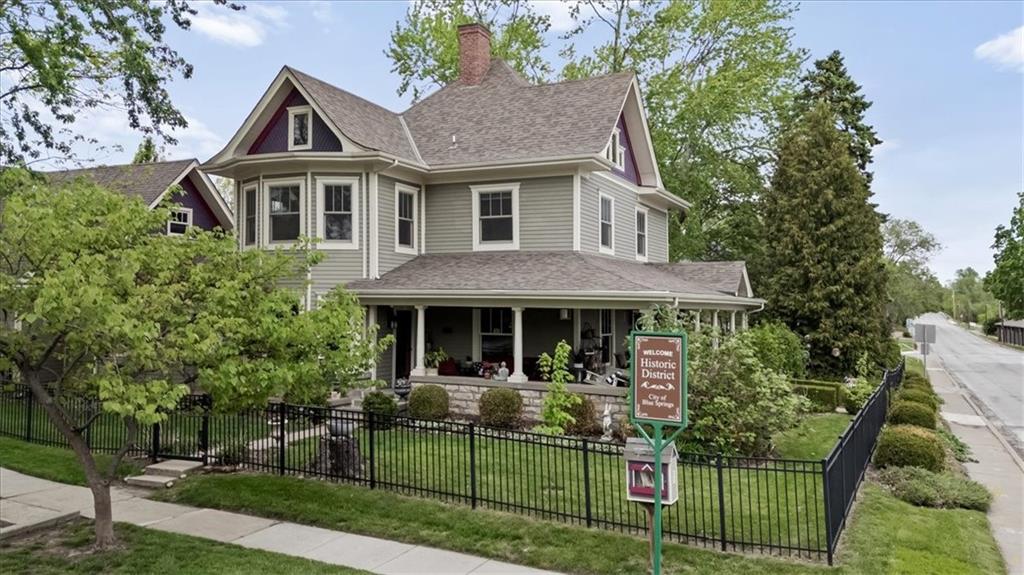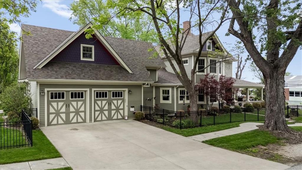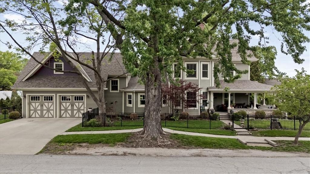 Hands down, the most unique and carefully restored historic home in the heart of Blue Springs. Nothing rivals this home as no expense was spared in completely restoring this 1908 beauty, and then taking it well beyond even the original build with a large addition including 2 car garage and additional living space above, plus a complete makeover of the detached carriage house which includes a third garage space, storage, a finished lower level studio with full bathroom and a studio apartment on the upper floor with its own driveway, access, kitchen, full bathroom, and laundry. This is better than new construction with high-end finishes throughout, and still the advantage of new everything - from completely new underground utilities for water, electric, gas, and sewer, to energy efficient spray foam insulation in all exterior walls, to the expensive, period-appropriate new double pane thermal wood windows. You'll be charmed by the spacious open level, thanks to engineered beams and posts that allow for a super open layout with the chef's kitchen as the centerpiece. Many of the 100+ year old materials were repurposed on the main level including douglas fir shiplap that is now the eat-in kitchen ceiling, or the original barn wood that is now a bartop between the two decorative shelves that frame the kitchen. There's even original stained glass in the grand staircase! Outside is a gardener's paradise with a sprinkler system that covers every square inch and a meticulously manicured yard, maintained by a master gardener. It's the entertainer's dream with the dedicated hot tub area, beautiful built-in brick fireplace, plus the state-of-the-art swim spa that stays with the home. The primary suite is a dream with vaulted ceilings and a giant bathroom with dual vanities and a cavernous walk-in double shower. Walk-in closets galore and tons of storage. Documentation for virtually everything. This is truly a once-in-a-lifetime opportunity. Preapproval required for showing!