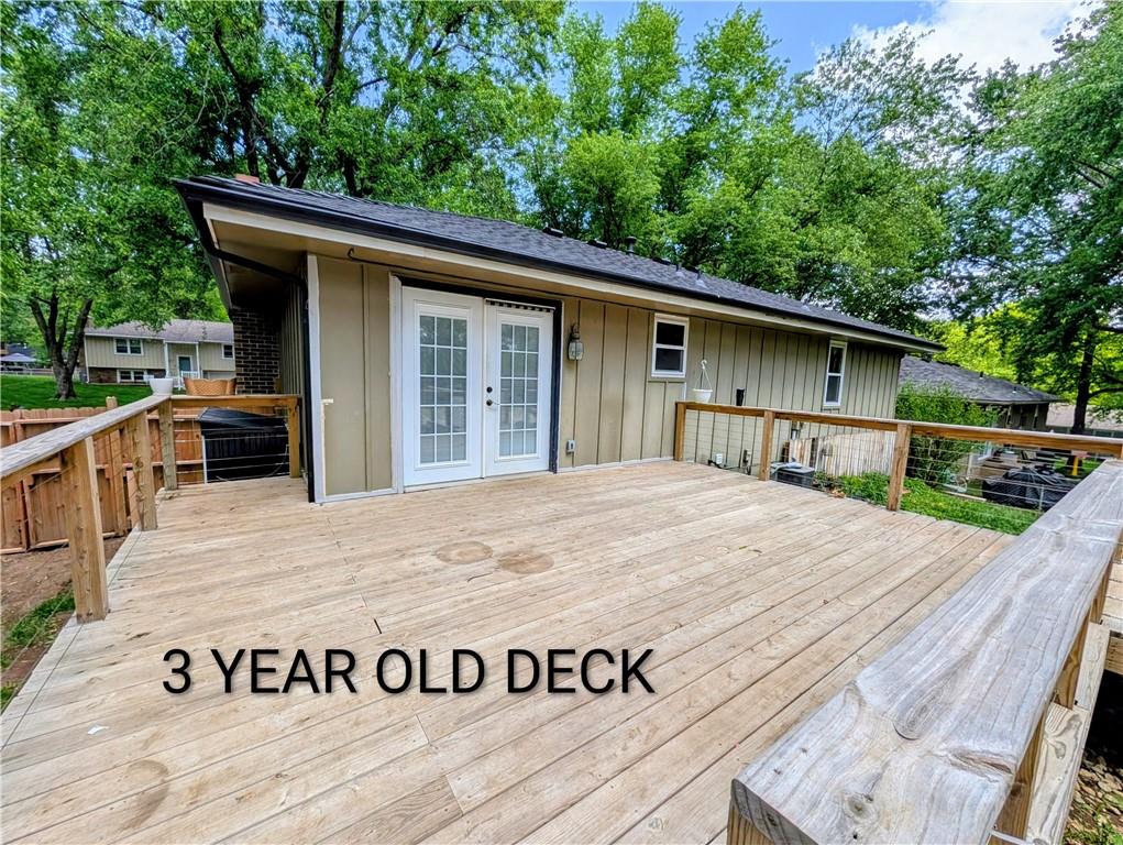 Incredible Value & Major Upgrades in a fabulous Blue Springs neighborhood. Priced to Sell! Solid Bones with Premium Exterior Upgrades. Rare opportunity to grab a 47-year one owner home at a significant market discount! While the interior is ready for your creative vision and a fresh start, the "big ticket" exterior items are already taken care of for you. Enjoy peace of mind with a brand-new roof and gutters, plus a massive custom deck built 3 years ago, which is perfect for entertaining. A covered brick patio so you can cook your favorite food and stay dry while enjoying your favorite beverage. Don't forget that there is a 24-foot-wide above-ground pool in the backyard. This long-time family home is looking for its next chapter! Situated on a great lot and a great backyard that's ready for the next owner to enjoy as much as the current owner. The home is priced specifically to allow the new owner to customize the interior to their exact taste. Significant price concessions have been built in. A perfect project for someone looking to build equity in a solid, well-loved home. Selling AS IS. Let me just say that "this family's history started 47 years ago in this home. One owner. Zero restrictive HOAs. This home was the neighborhood’s open door—a place of constant barbecues, holiday traditions, and children learning to swim in the private pool. Though it’s ready for your finishing touches, the infrastructure is sound with a newer roof, a newer huge deck for entertaining, and good solid bones. It was so loved that the family’s departure was marked by tears of joy for the memories made here. If you’re looking for a home with a soul and the freedom to make it your own, you’ve found it." This home is in the top-rated Blue Springs School District. The elementary school and the middle school are a short 3-minute drive, and the High School is a 5 minute drive.