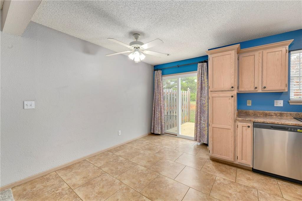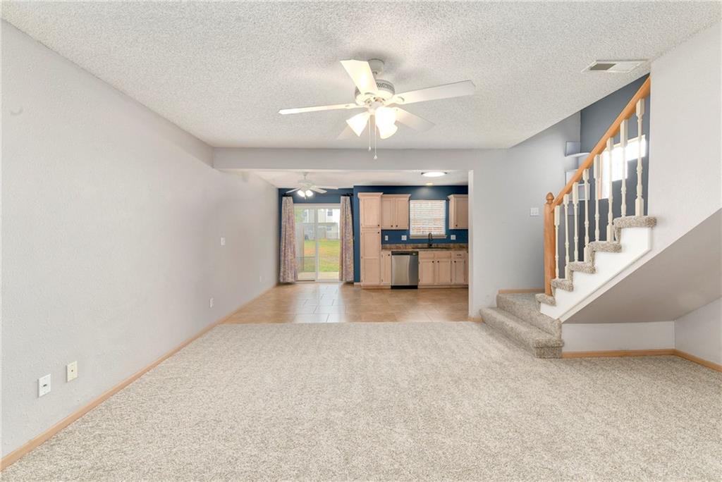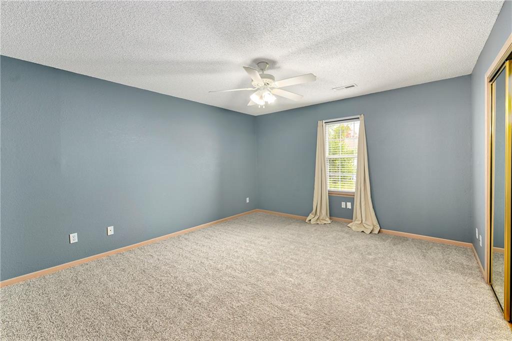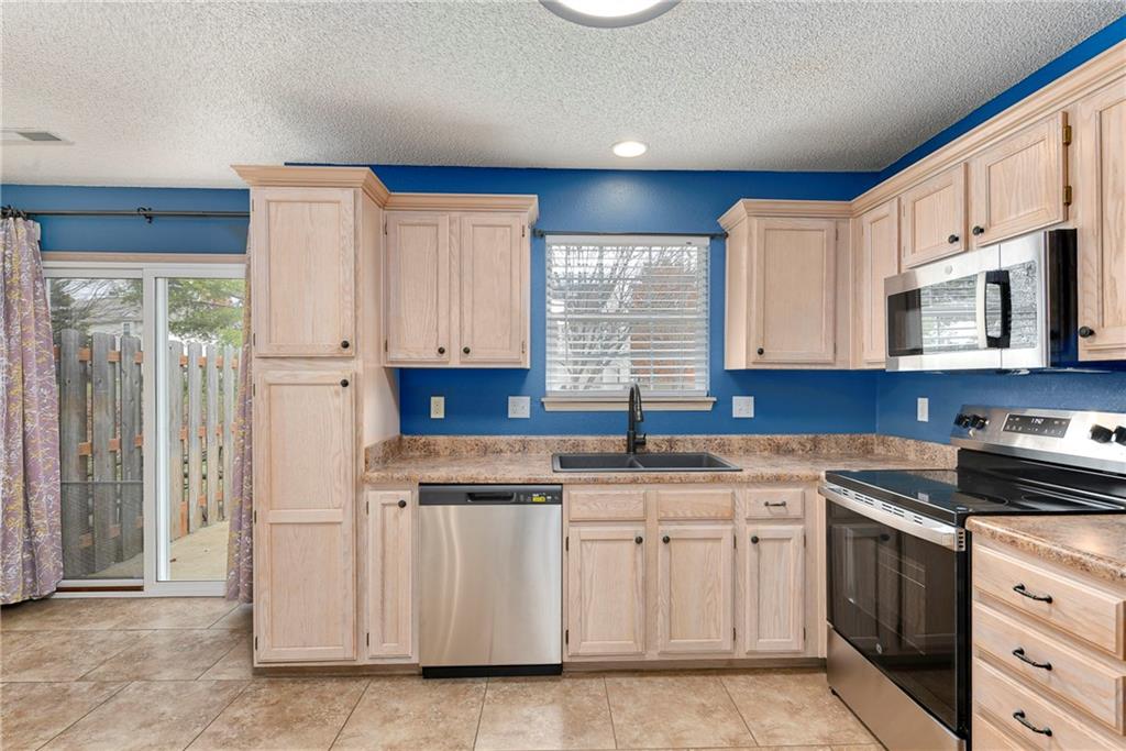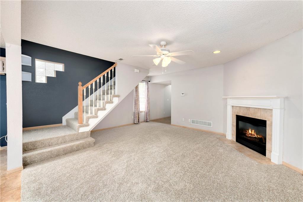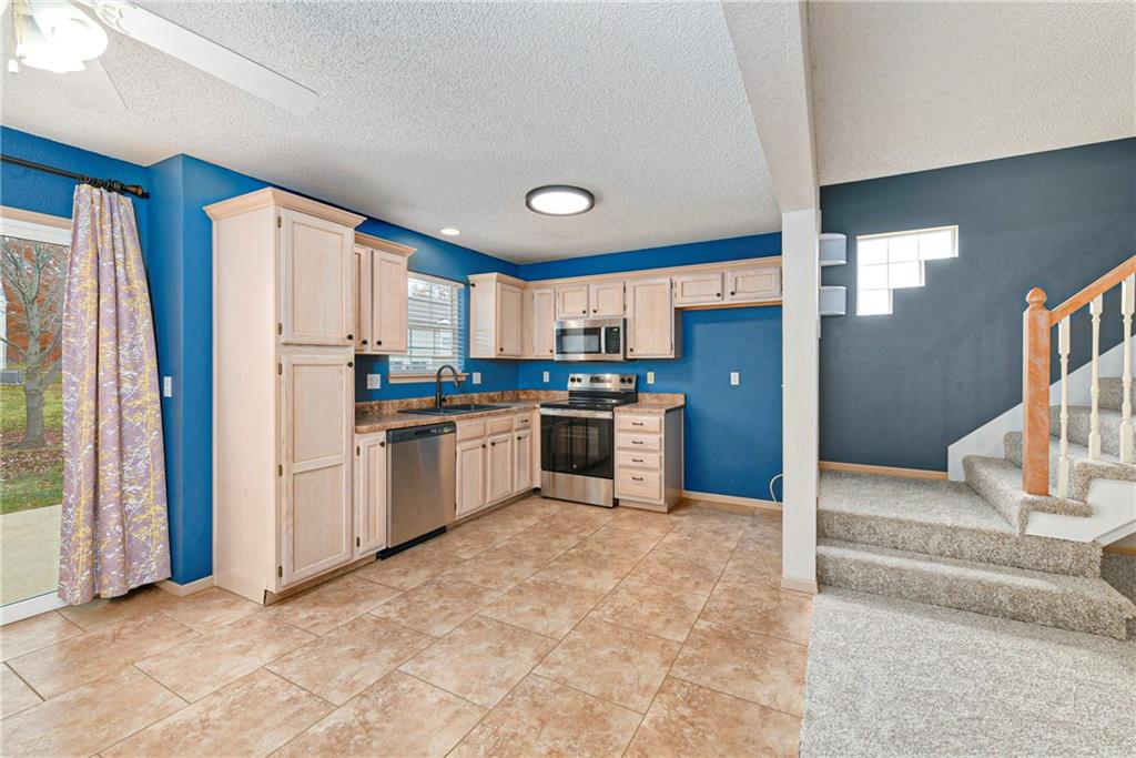 Now is your chance....don't miss it! Highly sought after end unit that backs to greenspace with trees. MOVE IN READY!!! Cleaned from top to bottom (even power washed the patio) with a splash of color (various ocean/sky blues and relaxing grays). NEW - kitchen SS appliances (stove, microwave, & dishwasher), carpet throughout the whole unit, kitchen faucet, primary suite - light fixtures, sink faucet, shower & bathtub faucets, toilet flange ring & wax ring), water heater (next week), window & storm door screens (4), & 2 sets of blinds. Seller replaced A/C unit the summer of 2023 to a Trane XR (upgraded). Other updates include - kitchen ceiling light fixture, taller toilet in primary bath, & new fan in living room. BIG BONUS - Garage features an attic pull-down with stairs for additional storage. Front faces West (sun to clear driveway). The patio is on the East (shade for the evening). Washer & dryer stay with the unit. Amenities include lawn care, snow removal, community pool, exterior maintenance. Neighborhood is owner occupied only, no rentals allowed. Home is close to shopping and restaurants, with quick highway access, and located within award winning Lee's Summit School District. Don’t miss out on this fantastic opportunity to own a move-in ready home with thoughtful updates in a prime location.