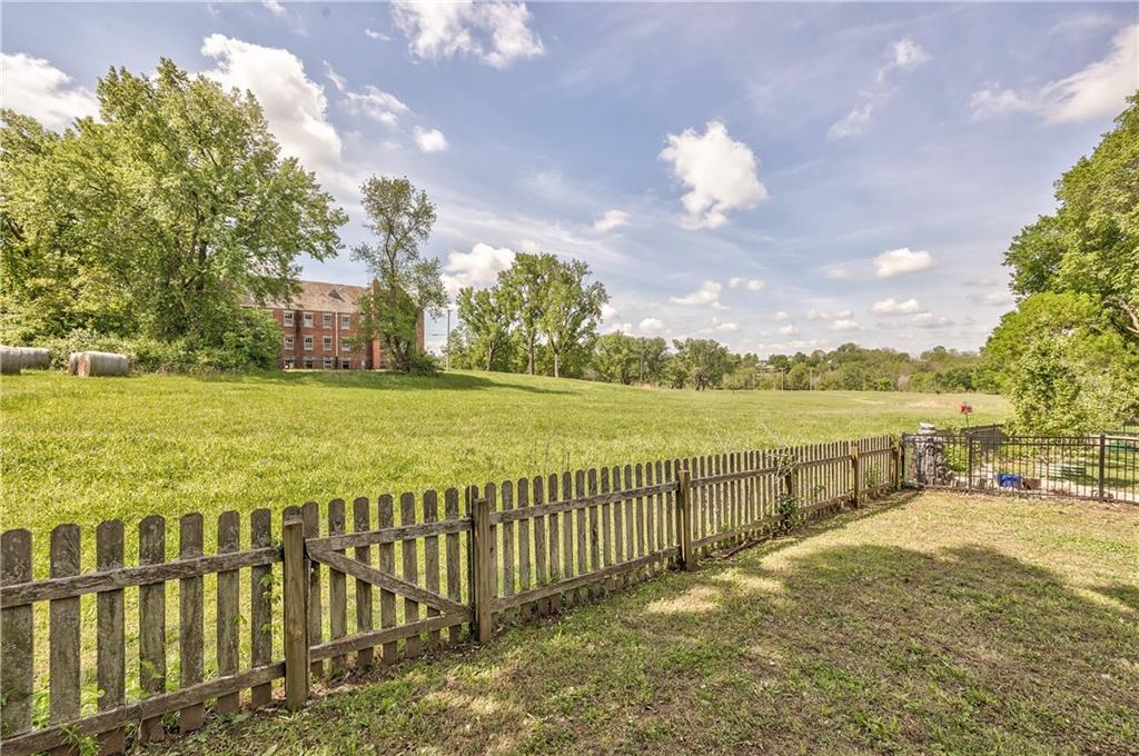 Expansive fenced yard opening to a large grassy field