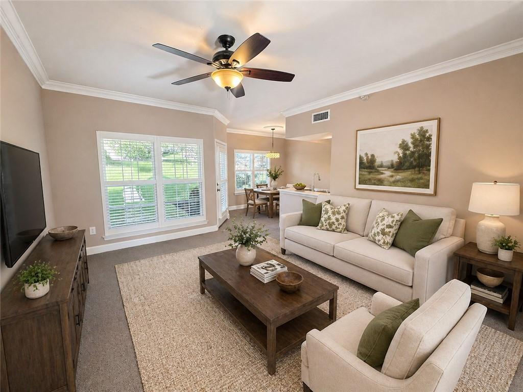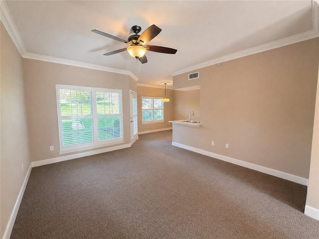 Welcome home to maintenance-free living in the heart of Leawood. This well-maintained ground-level condo is ideally situated within the community, just steps from the clubhouse and pool—offering both convenience and a highly desirable location. Inside, the open floor plan is spacious and functional, designed for comfortable everyday living and easy entertaining. The living and dining areas are filled with natural light, enhanced by windows with wood blinds that create a warm and inviting atmosphere. The adjacent kitchen offers a clean, open layout with ample cabinetry and counter space, seamlessly connecting to the main living area. The bedroom is generously sized and complemented by a large walk-in closet. A convenient laundry area is located just off the kitchen, and all appliances and window treatments remain with the home—making this unit truly move-in ready. Additional highlights include a designated parking space located directly in front of the unit, along with a covered rear patio perfect for relaxing. Residents enjoy access to a full suite of amenities, including a clubhouse, pool, tennis courts, pickleball courts, and nearby walking trails. With quick access to shopping, dining, and I-435, this home offers the perfect combination of comfort, convenience, and low-maintenance living.