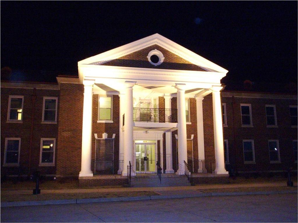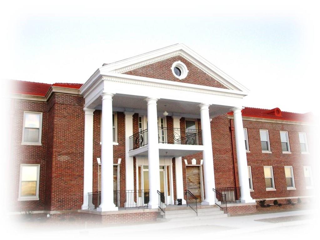 Just off of N. Belt Hwy & N. Village Drive, behind the Shoppes at North Village, south of Theater. Look for the big brick building with white pillars.