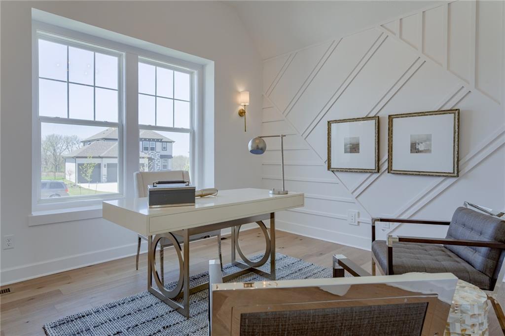 Estimated completion in approximately 60 days, The Kingston by Rodrock Homes is a stunning 1.5-story plan offering a main-level primary suite and an executive office/flex room. Hardwood floors extend from the entry into the great room, kitchen, dining area, and pantry. The great room features a soaring ceiling with beams and a see-through fireplace that connects to the covered patio overlooking the backyard. The kitchen includes custom cabinets, a breakfast-bar island, wall oven, gas cooktop, and a walk-in pantry, with time remaining for buyers to personalize most finishes. Convenient main-level laundry offers walk-thru access from the large primary closet into the spa-inspired primary bath, which includes a walk-in shower and dual vanities with upgraded granite. The upper-level landing is open to the entry below and offers three spacious bedrooms, including one with a private full bath and a Jack & Jill bath between the others. The lower level can be finished for added living space, designed to suit future needs. Stonebridge Park is part of the award-winning Stonebridge community, offering four zero-entry pools, two clubhouses with fitness facilities, sport courts, playgrounds, and walking trails. Nearby recreation includes Heritage Park (~0.3 mi) with a 1,234-acre lake, dog park, athletic fields, disc golf course, and 18-hole golf course. Area schools include Prairie Creek Elementary (~0.6 mi), Woodland Spring Middle (~1.0 mi), and Spring Hill High (~5.5 mi). Daily conveniences are minutes away, including local coffee shops (~1–1.2 mi), Natural Grocers (~4.2 mi), and Price Chopper (~4.5 mi). Taxes, square footage, and room dimensions are estimated – Buyer or Buyer Agent to verify.