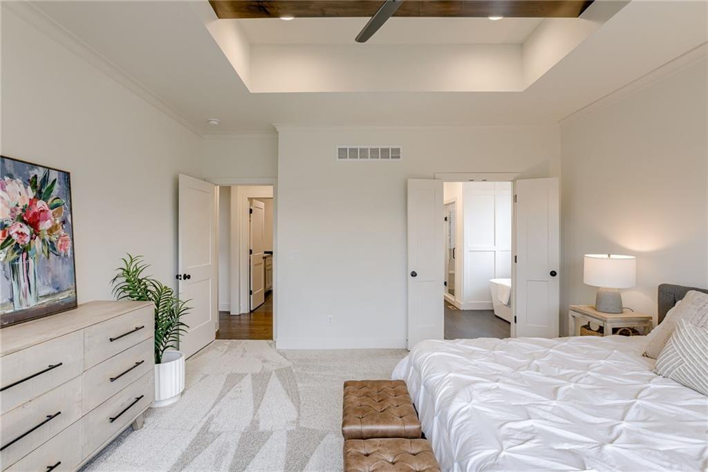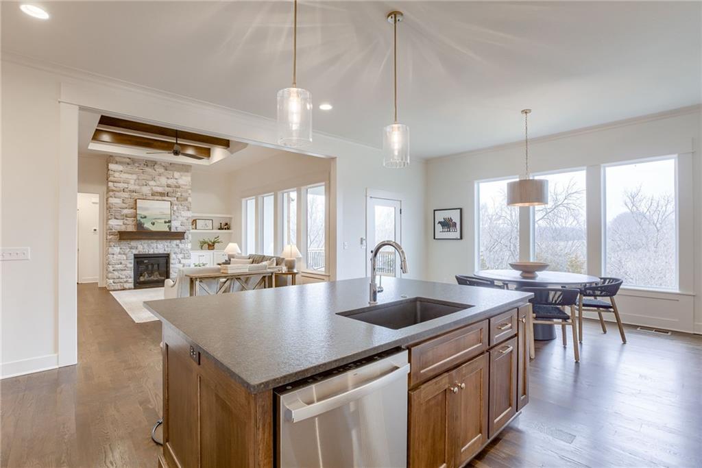 HURRY TO GET THE LAST NEW HOME ON A WALKOUT LOT BACKING TO TREES AND GREENSPACE!! This gorgeous expanded Alexander with a covered front porch offers main level living with an open kitchen, dining room & great room. The master bedroom/bath & 2nd bedroom/bath, plus laundry room are all on the main level. Two bedrooms, a bath & rec room are in the walkout lower level. Rec room includes walk behind wet bar. Wood floors in Great room, Kitchen, Dining room and entry; tile floors in all baths & laundry; Granite or Quartz counters in kitchen & all baths; covered deck w/Fireplace off dining area. Lower level has upgraded 10 ft foundation walls and walks out to a deck with steps to grade. Plus Much More! Room sizes, Sqft & taxes are estimated. PHOTOS ARE OF ACTUAL HOME.