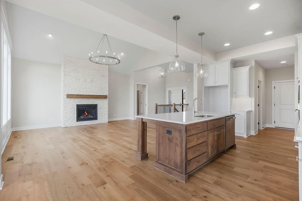 Move-in ready, the Sonoma by Rodrock Homes is a reverse-style floor plan featuring a main-level primary suite and an open Great Room with a vaulted ceiling and a wall of windows across the back, filling the space with natural sunlight. The chef’s kitchen offers a large island, walk-in pantry, and convenient drop zone off the garage. A guest bedroom with a private bath is located just behind the kitchen. The primary suite features a vaulted ceiling, spa-like bathroom with dual vanities, walk-in shower, and a huge closet with direct access to the laundry room. Enjoy outdoor living with a covered deck off the dining area, perfect for entertaining or relaxing. Residents of Stonebridge Trails have access to four zero-entry pools, two clubhouses with fitness facilities, sport courts, playgrounds, and walking trails. The home is approximately 0.3 mi from Heritage Park, a 1,234-acre recreational hub with a lake, dog park, athletic fields, disc golf course, softball, football, and soccer fields, plus an 18-hole golf course with driving range. Nearby schools include Prairie Creek Elementary (~0.6 mi), Woodland Spring Middle (~1.0 mi), and Spring Hill High (~5.5 mi). Daily conveniences are close by, including Natural Grocers (~4.2 mi), Price Chopper (~4.5 mi), and local coffee spots (~1–1.2 mi). Taxes, square footage, and room dimensions are estimated – Buyer or Buyer Agent to verify.