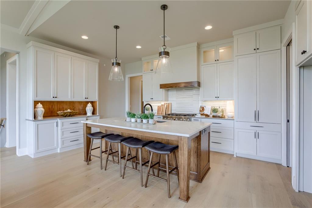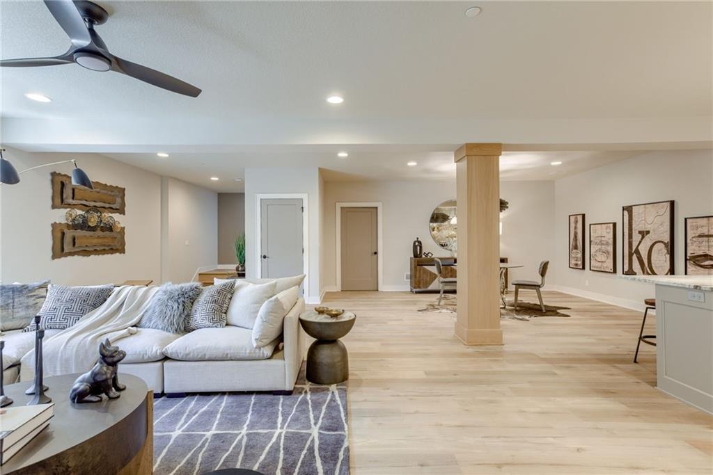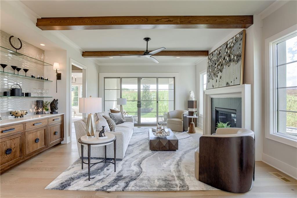 MODEL NOW FOR SALE AND PRICED BELOW REPRODUCTION PRICE! THE AWARD WINNING BELMONT BY LAMBIE HOMES IN REGENTS PARK OF LEAWOOD! This paired villa is READY NOW on level lot 23 and offers a luxury lock and leave lifestyle for those on the go! Step into refined elegance with this impeccably designed plan by Lambie Homes! This move-in ready model is priced below today’s reproduction cost and offers an unmatched value in luxury living! The exterior features a striking elevation with stucco and stone accents, as well as a tile roof. Inside, natural light floods a beautifully open layout featuring soaring ceilings, a stunning barrel-vaulted dining room, and a great room with exposed beams that flows seamlessly onto a covered lanai—perfect for indoor-outdoor entertaining! The heart of the home is a chef-inspired kitchen outfitted with an oversized island, gas cooktop, custom cabinetry, walk-in pantry, bar area, and wide-plank 7" white oak engineered hardwood flooring throughout. The spacious primary suite is your private retreat, offering a spa-like bath, large walk-in closet, and direct access to the laundry room for ultimate convenience. A flexible main-level room with its own full bath and walk-in closet adds versatility as a guest suite or home office. Downstairs, the finished lower level is an entertainer’s dream—featuring a generous family room, game area, custom wet bar, two additional bedrooms, and another full bath, all designed with gatherings in mind. Located in Regents Park, one of Leawood’s premier luxury villa and single-family home communities, you're just moments from the vibrant shopping and dining along 135th Street. Don’t miss this rare opportunity—stop by our model home today to learn more about this home or additional inventory/building sites for both paired villas and single family homes! You will be amazed at the spaciousness of this floor plan! PICTURES ARE OF ACTUAL HOME!