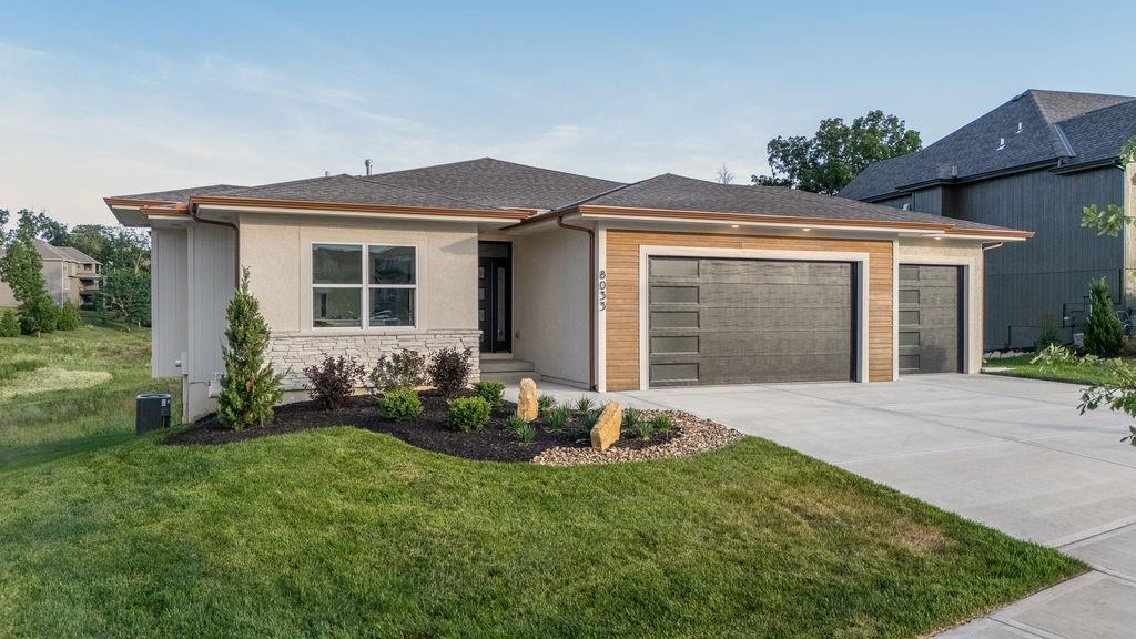 The Capri by Rob Washam Homes brings modern convenience, everyday comfort, and set against peaceful green space on lot 32 in the rolling hills of West Shawnee at Bristol Highlands, and the best part... no more waiting because this home is MOVE-IN READY now! With its mix of cedar, stucco, and stone, this home makes a memorable first impression—and the inside doesn’t disappoint. Soaring 11-foot vaulted ceilings, oversized windows, walkout finished lower level, and an open, airy layout make the space feel calm, bright, and ready for whatever your version of “living your best life” looks like. With 4 bedrooms, 3 full baths, and 2,941 square feet, you’ve got room to host, unwind, set up a home office, or simply spread out in style. The designer kitchen includes quartz countertops, soft-close drawers and cabinets to ceiling, a walk-in pantry with prep space, and a large island perfect for anything from casual mornings to late-night takeout. The primary suite serves serious retreat energy—soaking tub, zero-entry shower, separate vanities, and a walk-in closet with space for everything (plus a little extra). Main-floor laundry is tucked conveniently off the mudroom with access from both the garage and living areas—smart, seamless, and convenient. At Bristol Highlands, you’re just minutes from Lenexa City Center, Shawnee Mission Park, Lake Lenexa, and nearby trails—ideal for staying active or soaking in the picture perfect surroundings. A future clubhouse and resort-style pool is coming soon. Don't let this one pass you by it's the best opportunity in Bristol Highlands!