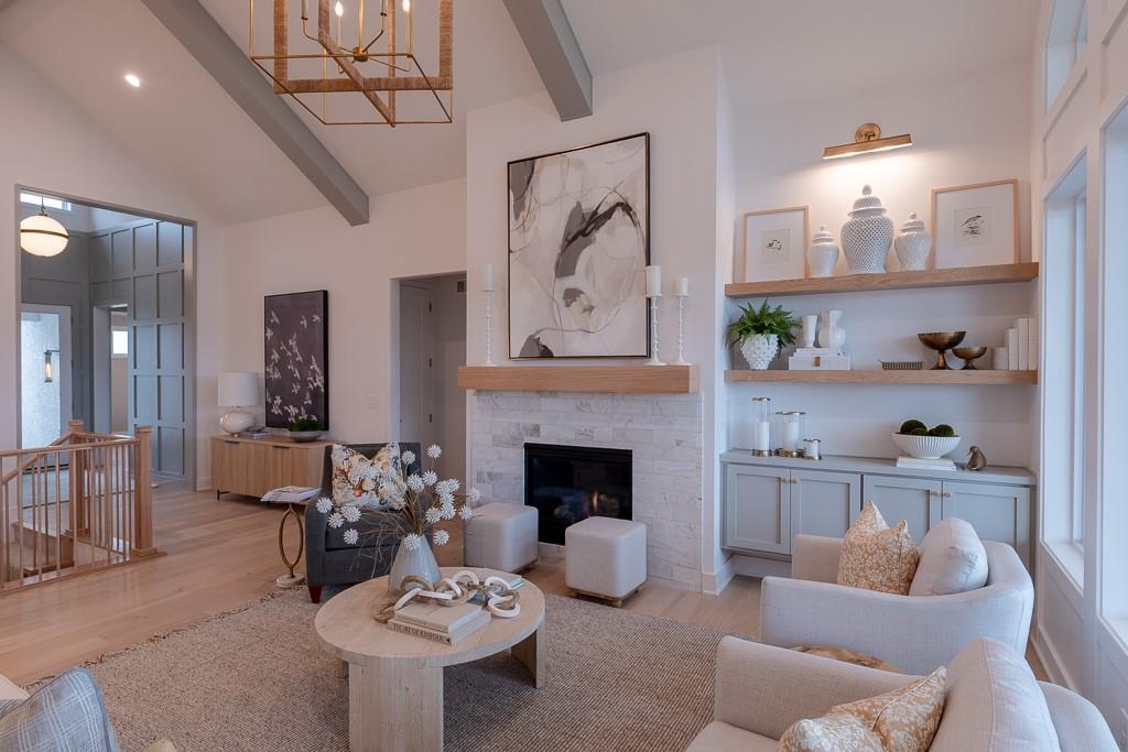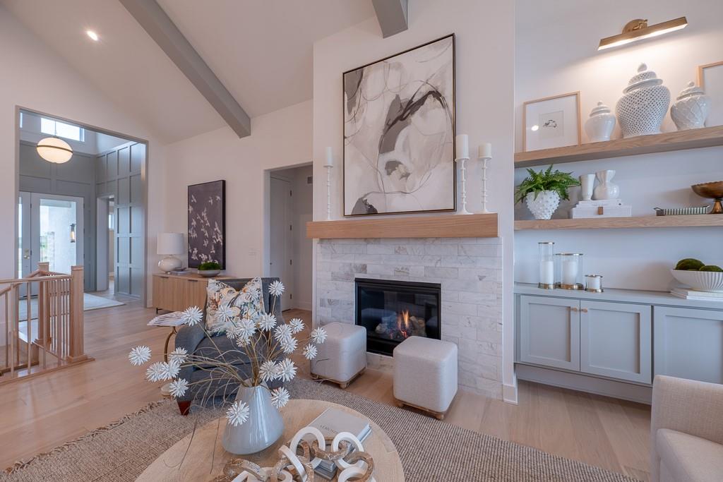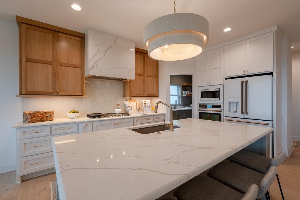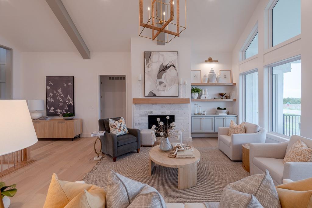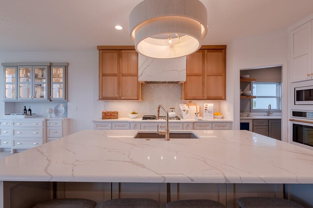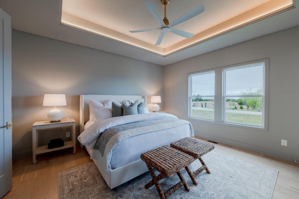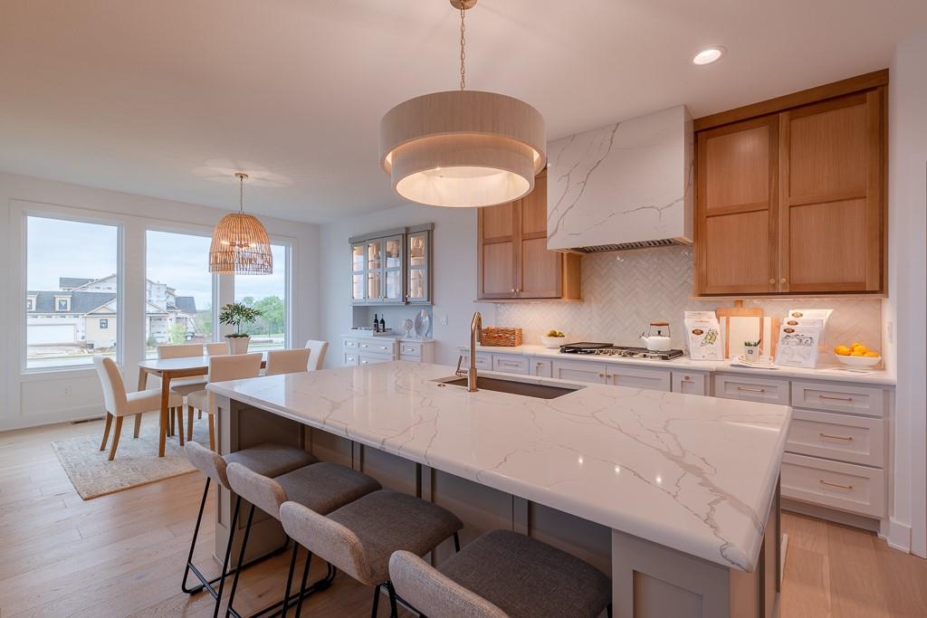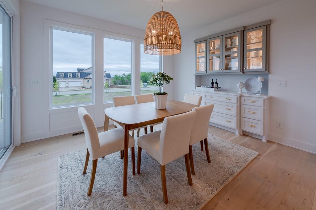 MODEL HOME FOR SALE - UPGRADES GALORE! Kessler Custom Homes parade-winning Ashley II reverse 1.5 story in maintenance provided community. Prepare to be wowed by this impeccable and beautifully designed home. The double door entry leads you inside into the spacious entry and great room with fireplace and built-in cabinet and windows the large overlooking covered deck. Fantastic kitchen with oversized island, gas range, built-in micro/oven and walk-in pantry. Breakfast room with stunning beam work on ceiling. Mudroom with bench located off garage. Main level master suite with deck access and a stunning bathroom complete with double vanities, walk-in shower and a generous closet that conveniently connects to the laundry room. Two additional bedrooms that share a bath on the lower level. Secondary living space with a full wet bar in the family room. Ample space for additional storage or finish with the suspended slab under garage. Lawn care and snow removal taken care of along with access to Cedar Creek's amenity package that includes clubhouse with exercise room, indoor basketball court, 2 swimming pools, tennis and pickleball courts, 65 acre lake access and trails.