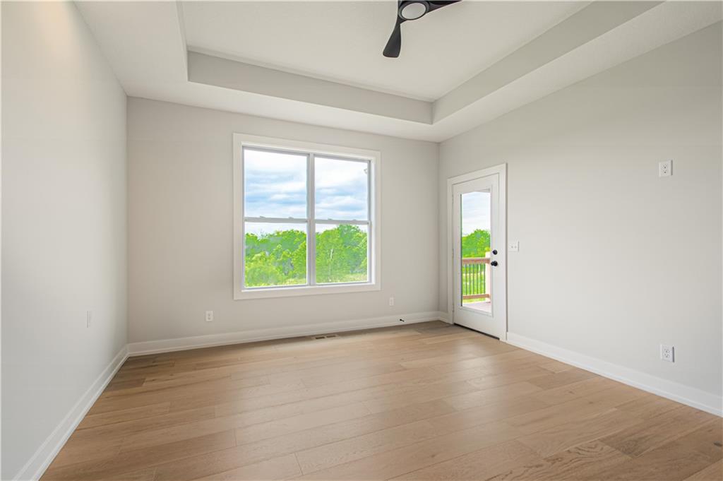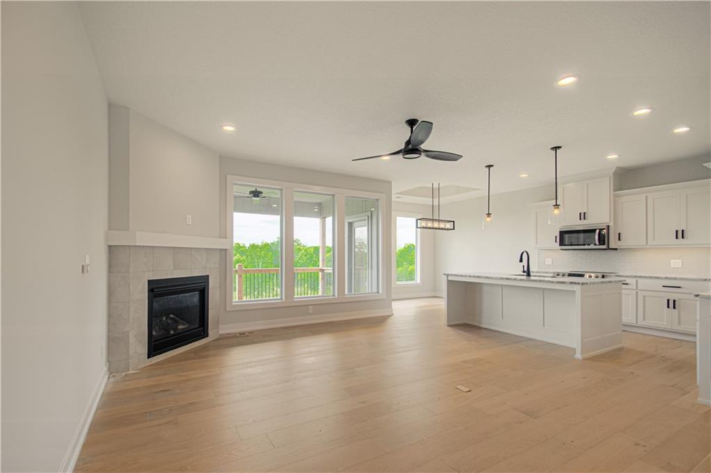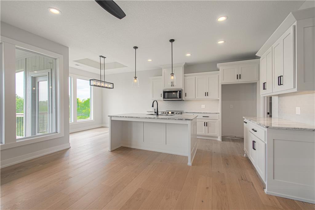 Move-In Ready! The Edgar Plan By Houston Home Builders is a Reverse 1.5 that boasts an Open Concept Main Floor and all one Level Living. With The Master Suite which walk out to the covered trek deck and Spa like bathroom which flows to oversized walk-in closet and the laundry. This home offers an additional bedroom and full bath on the main. With hardwood floors thru out the main and a large wall of windows to allow for natural light to view backyard that backs to green space. A chefs kitchen with Stunning custom cabinets, a large center island, and nice sized pantry- !Down to the full finished walk-out basement with a Rec room 2 additional bedrooms and a full bath with additional storage . This basement walks out to the backyard and allows for plenty of room for entertaining . This home is situated in a quiet cul-de-sac and backs to trees and green space. Located in The Running Horse Subdivision and Platte County School District, ready to call home!