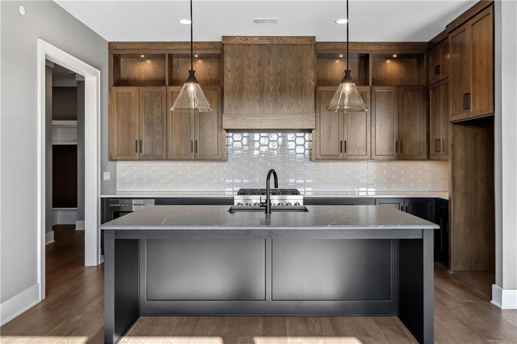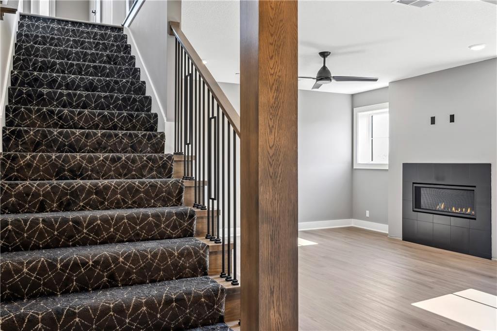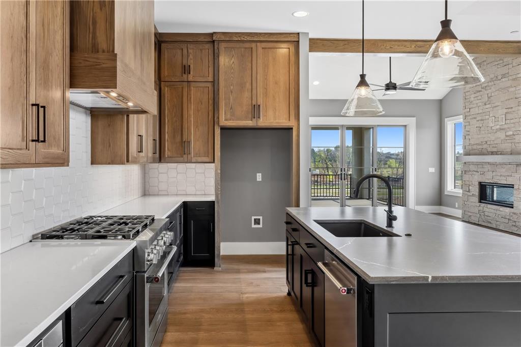 *READY NOW/COMPLETED AND PRICED BELOW REPRODUCTION!* The Kensington by Lambie Homes is a paired-villa plan on daylight lot 2/D4, that offers 4 bedrooms, 4 bathrooms and a 2-car side entry garage WITH ZERO ENTRY FROM GARAGE TO HOME. At over 2,679 sq ft, this home offers thoughtfully edited living and entertaining space in Regents Park--the area's premier luxury maintenance-provided community. This reverse story and a half plan features an open living, dining, and kitchen concept with a walk in pantry and mudroom. The first floor is comprised of the primary bedroom suite, full laundry room, flex room (perfect for a guest room or home office), additional full bathroom and a spacious covered deck. The lower level features 2 bedrooms with walk-in closets and accompanying bathrooms, large family room and a walk-up bar. Lush landscaping creates a picture-perfect setting and required elevated exterior elements include concrete tile roofs, durable acrylic stucco siding and natural stone accents set this neighborhood apart. Regents Park Leawood offers private neighborhood amenities which include a pool and pavilion, pickleball, dog park and a walking trail, located right off of the 135th St. corridor! SPRING PARADE OF HOMES 2025--2ND PLACE/SILVER AWARD FOR DISTINCITVE PLAN & DESIGN!