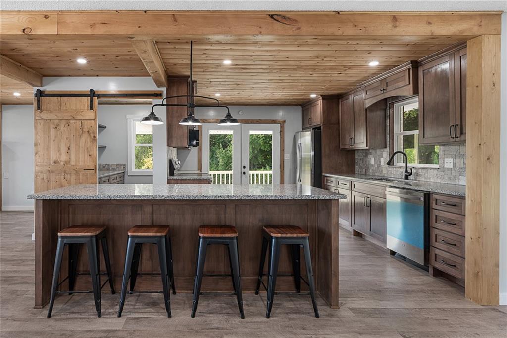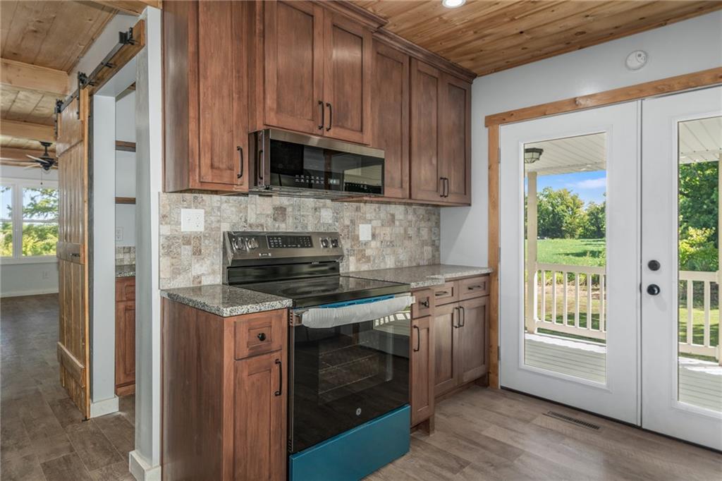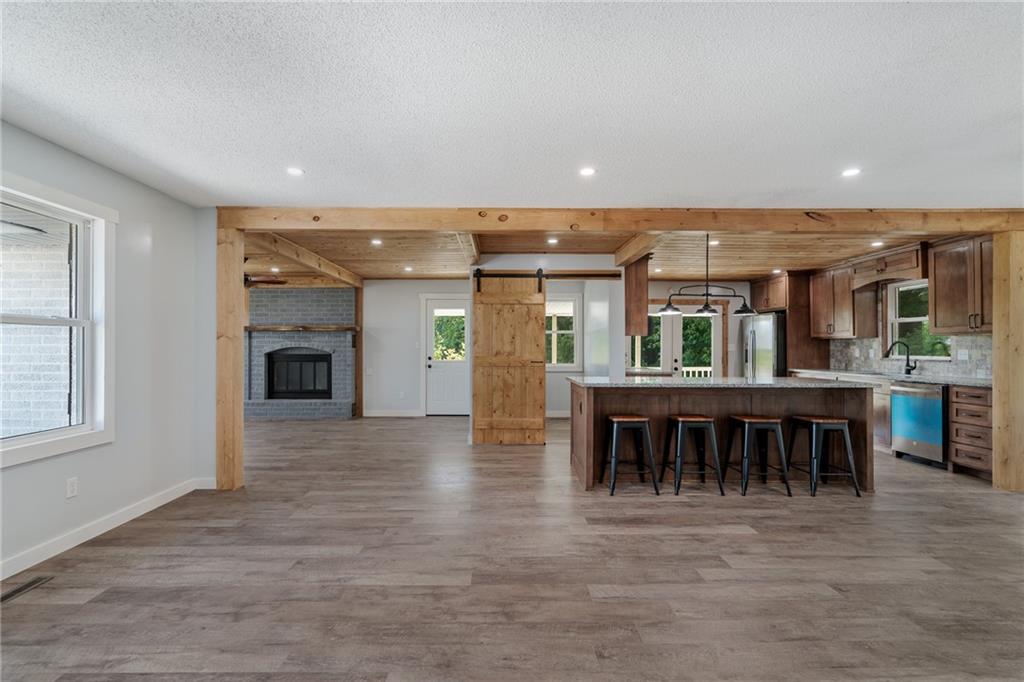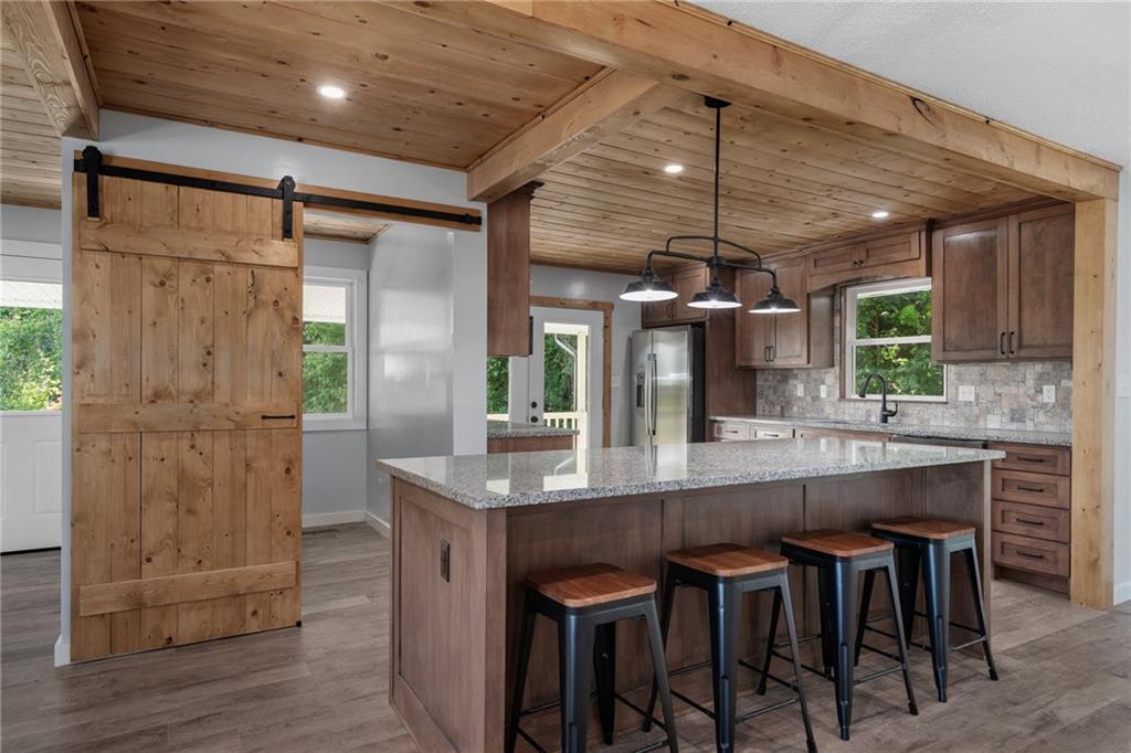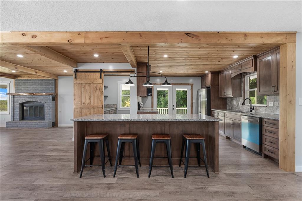 Welcome to your dream home—a beautifully renovated all-brick ranch nestled on 6 serene acres, offering the perfect blend of modern convenience and classic charm. This immaculate 3-bedroom, 3-bath residence has been meticulously updated from top to bottom, ensuring a move-in ready experience with every detail thoughtfully addressed. As you approach, you'll be greeted by a paved driveway that leads you off a blacktop highway, just moments from the picturesque Missouri River. The home is surrounded by mature timber, providing unparalleled privacy and a tranquil setting. Step inside to discover a spacious open-concept layout, where natural light floods the home, highlighting the new, high-quality flooring and fresh paint throughout. Two inviting fireplaces add warmth and ambiance to the living spaces, creating cozy spots for relaxation. The heart of the home is the newly remodeled kitchen, featuring sleek granite countertops, a custom pantry, and all-new appliances. An island with seating invites casual dining and conversation, making this a perfect space for both everyday meals and entertaining. The main level includes a convenient laundry room and three generously sized bedrooms, each offering comfort and style. The master suite is a private retreat with its own full bath. Outside, you’ll enjoy multiple areas for outdoor living, including a covered deck and two expansive patios, ideal for hosting gatherings or simply enjoying the serene surroundings. The large lot is enveloped by mature trees, ensuring your privacy and providing a picturesque backdrop to your everyday life. Additional features include a 2-car garage and access to the highly-regarded Wellington-Napoleon R-9 School District. Don’t miss the opportunity to own this exceptional home where every detail has been considered and every space has been beautifully renovated. Schedule your viewing today and experience the perfect blend of privacy, luxury, and nature.