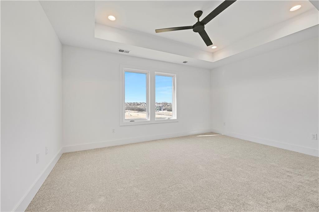 The beautiful Roanoke from Roeser Homes! This lovely 1.5 story home features an open floor plan with 4beds all with en suite baths, a half bath on the main level, and high-end finishes throughout. Luxurious details include dual heads in the master bath shower, quartz or granite tops and soft close cabinets in the kitchen, upgraded insulation for comfort and efficiency. The basement has 9' foundation walls and is stubbed for a 3/4 bath for convenience and comfort should you choose to finish the lower level. 1st floor Master has a large walk in closet. This home is nearly complete. Enjoy the summer in your new home! Located in The Sanctuary, one of Matt Adam's newest subdivisions. This Home is in the Blue Valley school district.