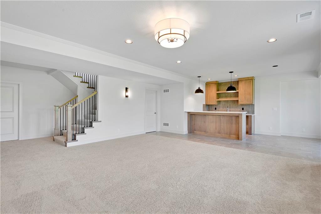 Move-In Ready! Stunning Jefferson II Reverse 1.5 Story by Bickimer Homes on a lovely walk-out lot backing to green space & tree-line! This 4 bed, 4.5 bath showstopper is packed with thoughtful upgrades and stylish finishes throughout. Enjoy a spacious open-concept layout with soaring ceilings, tall windows, gourmet kitchen featuring upgraded quartz countertops, Kohler Silgranite sink, oversized Step Shaker island, and stainless appliance package. The luxurious main-level master suite includes a spa-inspired bath with upgraded tile and fixtures. Entertain with ease on the covered deck or cozy up next to the F/C stone fireplace with custom built-ins. Finished walkout lower level rec room ft. front/back wet-bar, 2 bedrooms & 2 full baths. Additional features include hardwood floors in the study and stair landing, designer stair carpet and double front doors. This home combines elegance, comfort, and convenience! This home sits upon lot #10 in The Enclave @ Manchester Park. This wonderful community is walking distance to elementary school, has neighborhood pool, and is within very close proximity to everything else you'll need! Home is finished & staged.