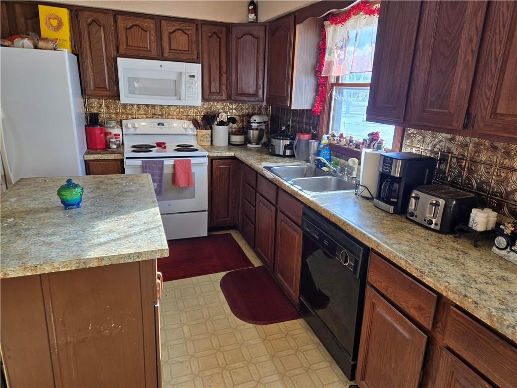 Ready to move to the country? With 14.57 acres +/-, this 3 bedroom, 2 bath ranch home is a great place to start! It is being sold "as is", but the sweat equity in this all brick front home is abundant. Spacious kitchen with lots of cabinet space, island and all appliances provided. Large living room with a brick, wood burning fireplace. The basement has 3 ways to gain access- through the garage, from the outside and a spiral staircase from the living room. The downstairs also features a second kitchen and second laundry room, great for guests! When you walk out the back door, you will see the large 30x18 concrete patio, great for entertaining or enjoying your morning coffee. Keep going and head out to the 48x40 shop (12x10 southside). The shop is divided down the middle with concrete floors throughout (12x14), heated and has lots of storage up on the mezzanine and in the parts room. The other side of the shop has a separate room divided (12x10) also with lots of mezzanine storage. There is also a 32x27 lean-to shed, great for equipment storage or would be great for livestock. Come take a look! It is on a blacktop road with plenty of acreage to make this place your own paradise!