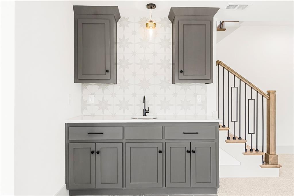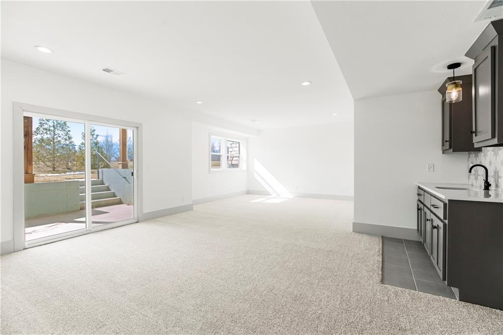 Welcome to Chapel Hill Villas in Overland Park, Kansas — a premier maintenance-provided community offering upscale, lock-and-leave living in the Spring Hill School District. This luxury twin-villa residence showcases the award-winning “Monroe” floor plan, with the GC James Engle Custom Homes, featuring elegant design, open-concept spaces, and effortless main-level living. With 1,680 square feet on the main level, this reverse 1.5-story home blends function and style through bright, vaulted ceilings, wide-plank hardwood floors, and designer finishes. The gourmet kitchen includes quartz countertops, a stainless steel appliance package, and ample cabinetry, flowing into a spacious great room ideal for entertaining or relaxing. The primary suite features a zero-entry shower, upgraded tile, and a walk-in closet designed for convenience and comfort. A second bedroom or study on the main level provides flexibility for guests or a home office. The finished lower level includes a recreation room, wet bar, and third bedroom and bath, with optional fourth bedroom and bath available—perfect for hosting or extended-stay guests. Enjoy the outdoors from your covered patio, surrounded by a serene, maintenance-free setting. Residents benefit from lawn care and snow removal included, making everyday living effortless. Community amenities include two swimming pools, a clubhouse, walking trails, and pickleball courts, all set within a vibrant and friendly neighborhood. Conveniently located near 69 Highway, shopping, dining, and recreation, Chapel Hill Villas delivers the perfect balance of luxury, lifestyle, and convenience in sought-after South Overland Park. Discover the “Monroe” floor plan — sophisticated, low-maintenance living built with quality craftsmanship and timeless appeal. Lot 28 Completed