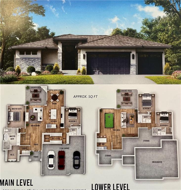 Model Not For Sale. Introducing the "Heather" reverse plan by Walker Custom Homes! Beautiful Designer finishes top to bottom in this amazing contemporary design home. A total Show Stopper for entertaining! Custom upgrades like waterfall kitchen island, cabinets, full basement bar and more! This plan comes with a Kitchen Prep/Pantry room! Upgraded lighting, flooring and tile too! Walkup/out to the backyard with a covered deck and patio, this home is a must see.Rodrock Development's newest community, Stonebridge South, offers the exceptional lifestyle for which the greater Stonebridge neighborhood is renowned, but this new community bestows homeowners the added benefit of quiet, private streets and a protected green space. This incredible new community has no “through streets”—meaning most homes are situated on cul-de-sacs and no unnecessary traffic mars this beautiful community. A nature habitat runs through the development and can never be built upon, offering additional privacy and all the benefits of greenspace and nature. Amenity package provides a wonderful lifestyle in an amazing location with 4 Pools, 2 Club Houses, Work Out Equipment, Sport Courts and Walking Trails! Heritage Park's 1,234-acres park is close by. It includes a dog park, lake, park shelters, athletic programs, 18-hole disc golf course, softball, football, and soccer fields, 18-hole Golf Course and driving range.