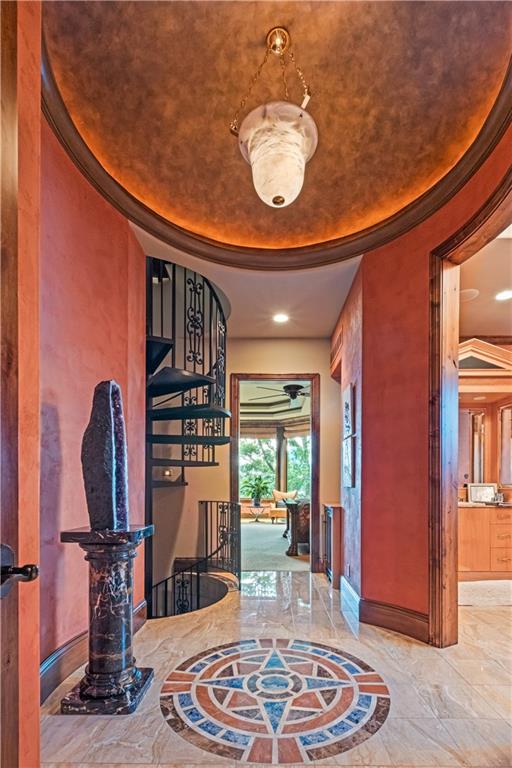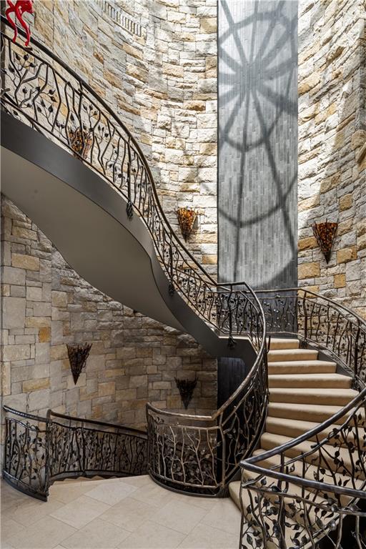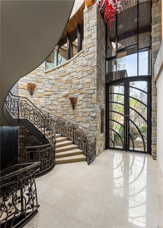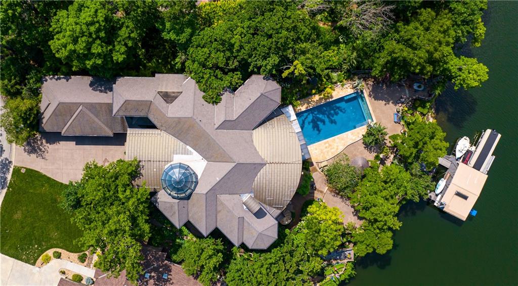 With an expansive lake front view, this home was designed for grand-scale entertaining yet tranquil retreat living. A museum-worthy 1,000 bottle wine room and glass dome-topped, free-floating 3 story spiral staircase greet you upon entering custom front doors. Prepare to be wowed by a 26-foot barrel wood ceiling, extending thru the home, and 900-gallon living reef, saltwater aquarium. High-end finishes/fixtures throughout include natural stones, rare woods, Labradorite main kitchen countertops, and hand-blown glass Chihuly chandelier. Stunning architectural ceilings include one-of-a-kind dining room ceiling - truly a work of art. Private Primary Suite hallway with marble mosaic floor, beverage bar, and stairway to the library & gym/spa. Suite includes fireplace, home theater system, steam shower, and deck access. Telescoping enclosure enables year-round use of infinity-edge pool. Lovely al fresco deck-dining with outdoor kitchen, custom granite 22-person table, fireplace, TV, & lake views. Indoors connects to outside via LL bi-folding doors, spa room and deck staircase. Lush, extensively landscaped grounds include gas torches, fountains, waterfalls, lighting, & integrated, computer-driven bug suppression system. Double boat dock with 4 hydro lifts. Appreciate the convenience & comfort of a 5 stop/2 door elevator, the latest smart home integrated system, 2 laundry rooms, dog shower, greenhouse, back-up generators, and heated driveway, steps, deck, main & lower-level European limestone floors. Midwestern-friendly, the Lake Winnebago community and well-stocked, 400-acre lake include many amenities. Why vacation at the lake when you can live the lifestyle every day? Home located less than 30 min from KC, in Lee's Summit school district.