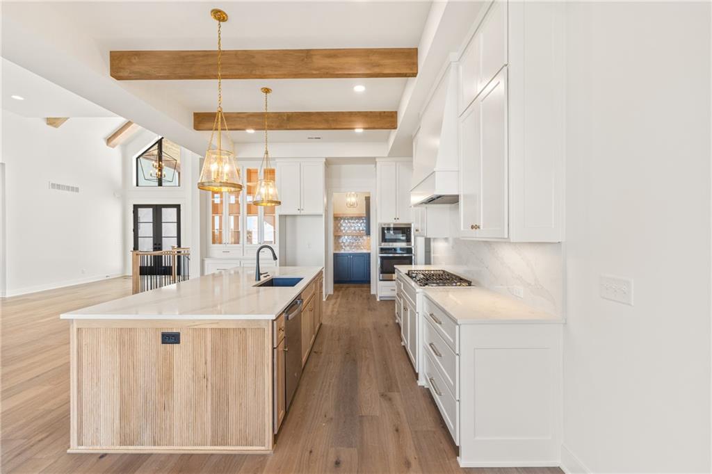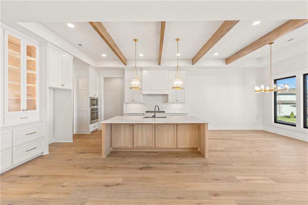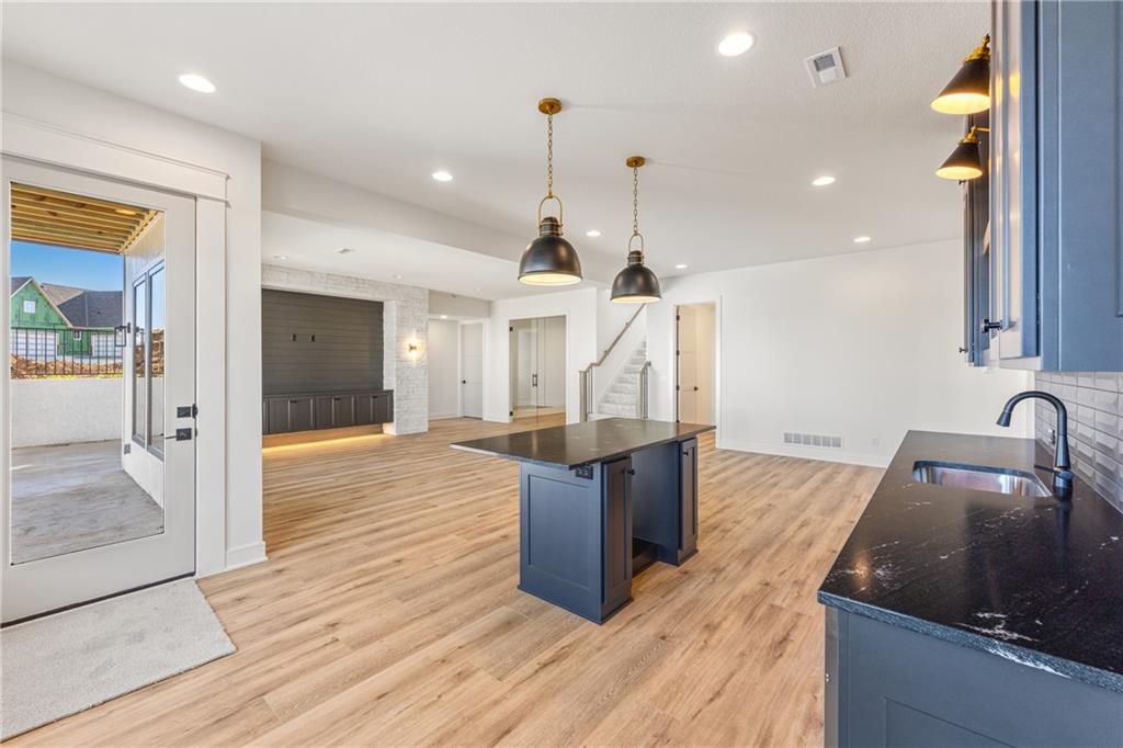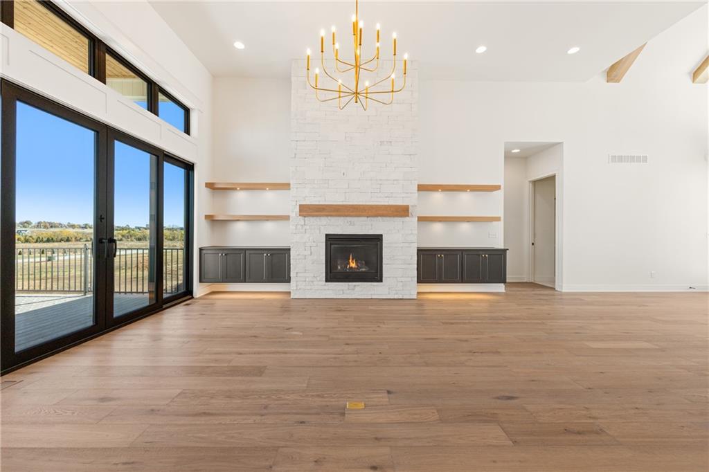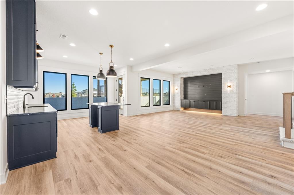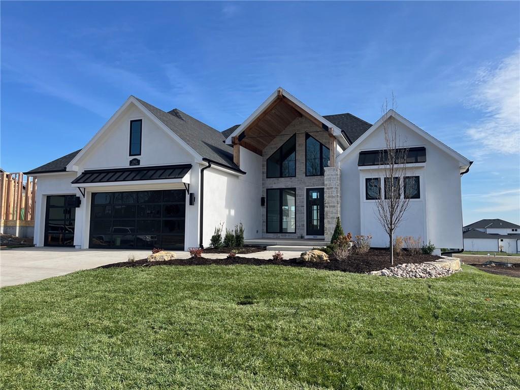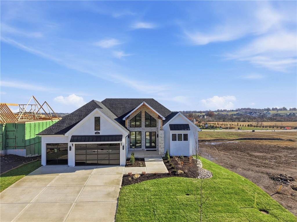 READY!! You'll love this sought after Gunnison REVERSE by JFE HOMES with a X-Large sunken patio on Lot #182 in a private cul-de-sac. This ideal floor plan is a popular one with spacious main floor living at just over 2000 square feet on the main floor and a full finished walkout lower level for a total of 3596 finished square feet of living space. BONUS WASHER AND DRYER already installed by the BUILDER! SO many extra features in this home like the pocket office, elegant glass doors in the kitchen, large prep pantry, free standing tub, pull down bars in primary closet. This beautiful home is an award winning plan and loaded with upgraded features at this price. The BRAND NEW modern look includes extra windows, vertical wood accent posts with real stone trim. Built on a walkout/up lot with an AMAZING OUTDOOR sunken patio. MUST SEE! This home also features a covered deck with fireplace, double sliders that open from the great room providing plenty of light, a large great room with high ceilings and an oversized kitchen with island prep style walk in pantry. The perfect walkout lower level is finished and has a spacious living room with wet bar, TV accent wall, and two additional bedrooms and a fitness room. Still plenty of room for basement storage. Century Farms has a spectacular club house with a farmhouse twist ideal for neighborhood gatherings or private parties. It features a small prep area, fireplace, pub tables, reading loft and a fitness center. Large resort style swimming pool. There are plenty of neighborhood activities with a fire-pit, two pickle-ball courts and a basketball hoop, farm themed animal kids play area, wildflower walkways and a community garden. Century Farms is conveniently located near the brand new Bluhawk shopping center, Heritage Park, the Johnson County Trail system and the Overland Park Arboretum. Come join the fun in Century Farms, a unique one of a kind upscale new home community in Overland Park. BLUE VALLEY SCHOOLS