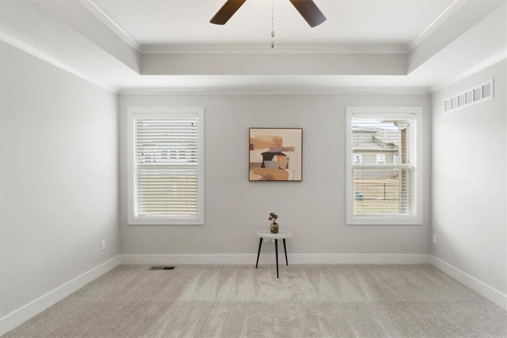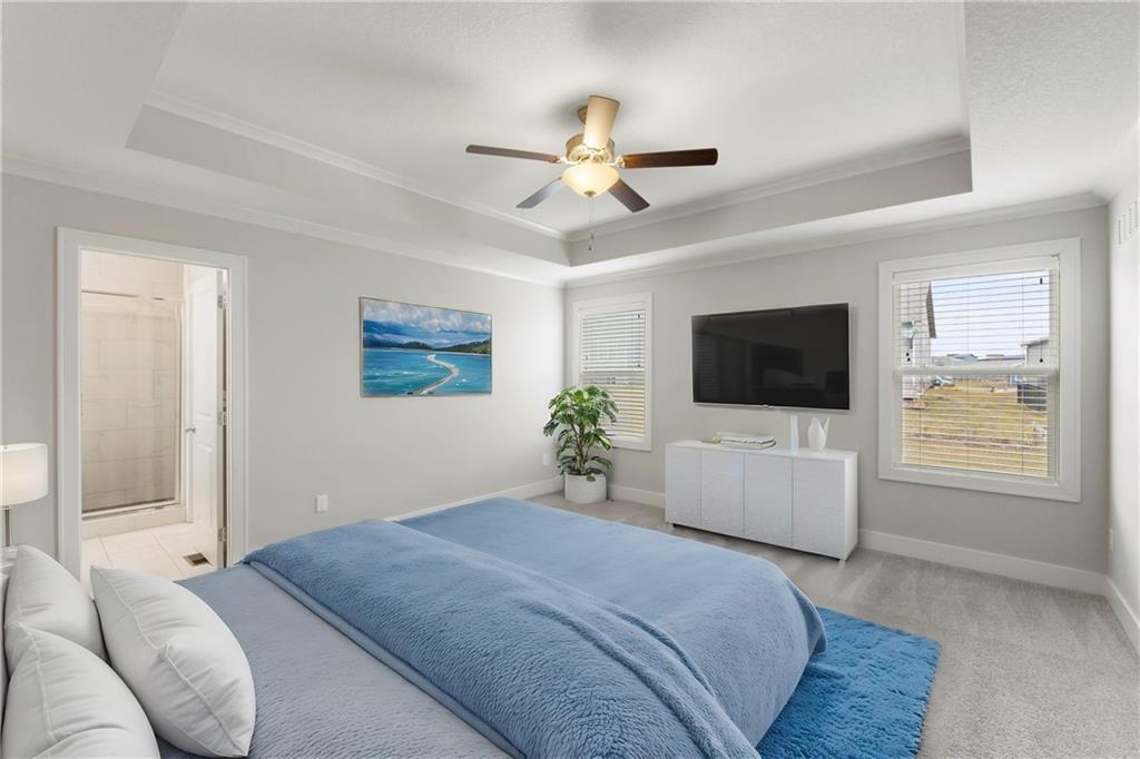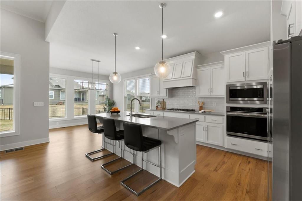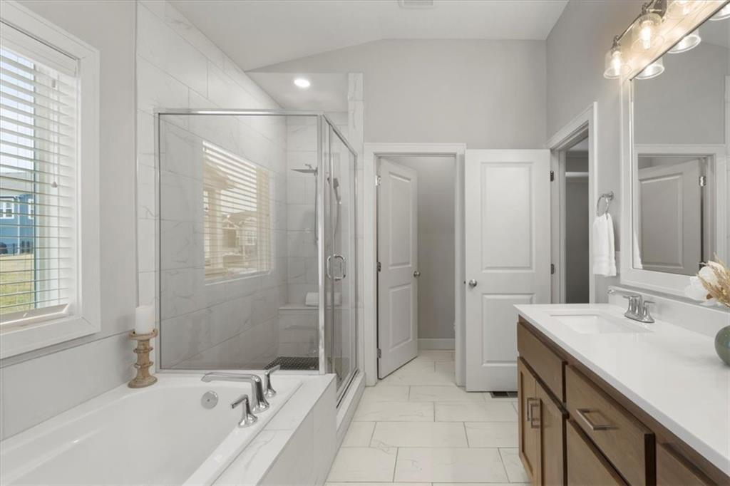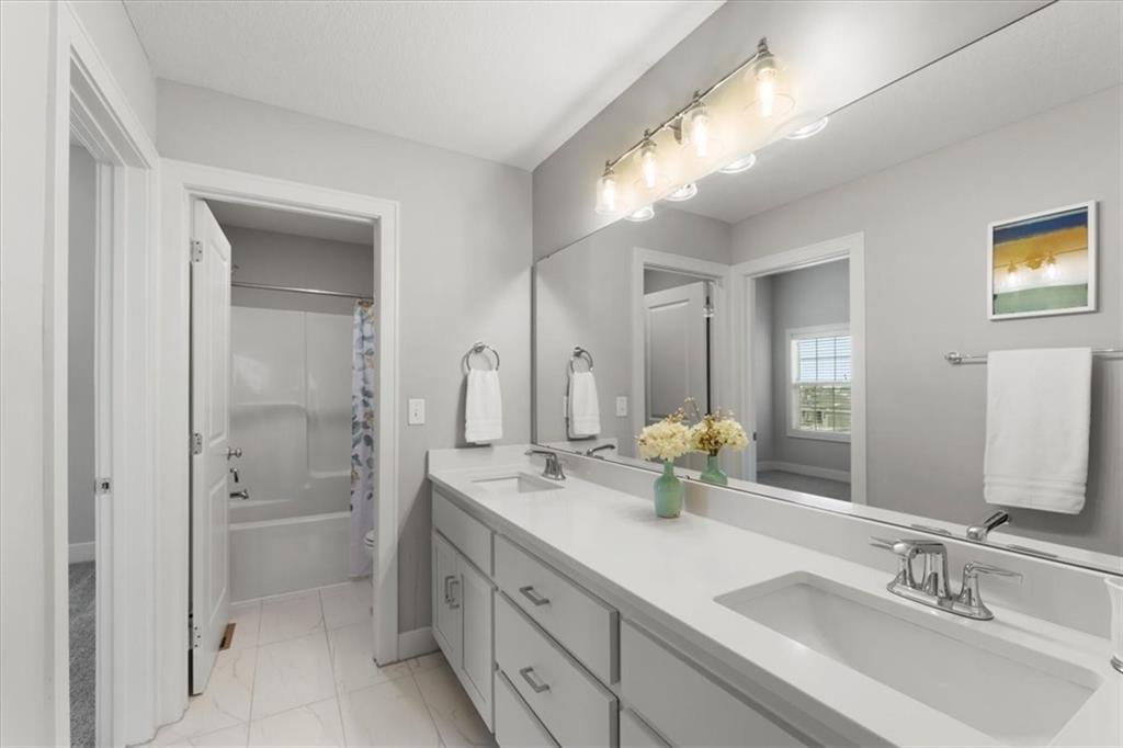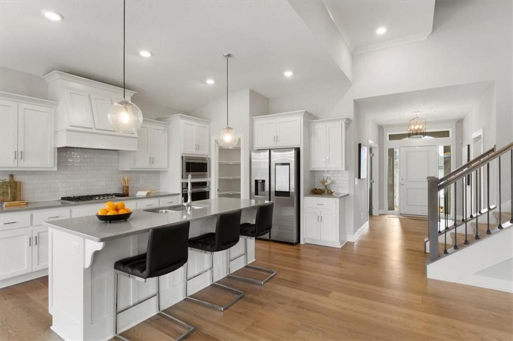 Luxury Living in Southpointe! Skip the wait for new construction, this better-than-new 1.5-story is packed with high-end finishes, brand new carpet throughout, and energy-efficient upgrades on a quiet cul-de-sac lot. The open-concept layout showcases hardwood floors, soaring ceilings, and abundant natural light. The grand living room features a stone-surround gas fireplace and custom built-ins, flowing into a designer kitchen with quartz countertops, a large island, subway tile backsplash, stainless steel appliances, and a walk-in pantry. The informal dining area opens to a covered patio and backyard, perfect for entertaining. The main-floor primary suite offers a vaulted ceiling, walk-in closet, and spa-like ensuite bath with a whirlpool tub, dual vanities, and separate tiled shower. A versatile office (or fifth bedroom), mudroom, and laundry with built-in storage add convenience. Upstairs, two bedrooms share a Jack-and-Jill bath, while a third has a private ensuite. The unfinished lower level includes an egress window, bath stub-out, radon mitigation system, and sump pump. Outside, the stucco exterior with stone accents, 3-car front-facing garage, and in-ground sprinkler system add curb appeal. The partially fenced backyard and covered patio with ceiling fan provide a peaceful retreat. Move in now and make it yours!