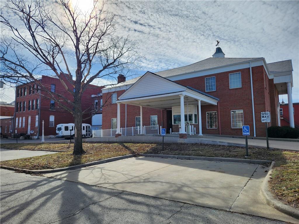 Positioned at a prime corner on Paola Park Square, this versatile 2-story brick building offers 12,252± square feet of space across three levels. Main Level: spacious lobby, two private offices, teller space, and drive-through window. Second Floor: includes men's and women's restrooms (2 stalls each), a break room with kitchenette, multiple private offices, and a large conference room. Lower Level: offers office and meeting spaces, two additional bathrooms, a kitchenette, extensive storage, and nuclear shelter. Separate parking lot parcel is included as part of portfolio sale. This centrally located property offers versatility to support a wide range of potential uses, including: office and professional services; retail and small business operations; cultural, community, and creative spaces; mixed-use concepts, including commercial with potential for residential. With adaptable spaces and prime downtown visibility, the property is well-positioned to serve local businesses, organizations, and future growth.