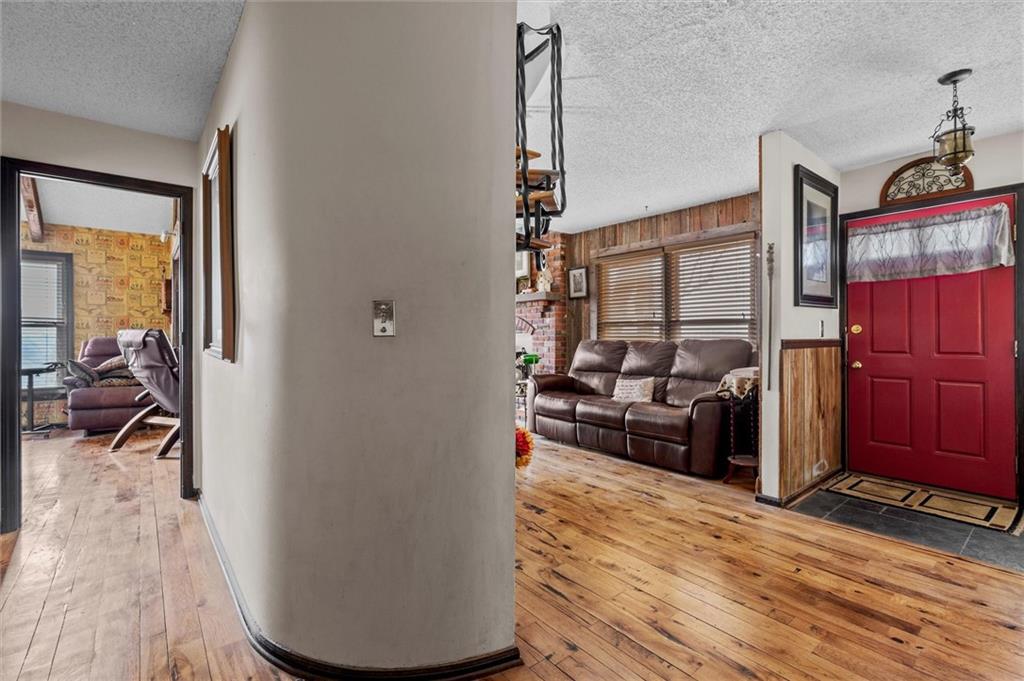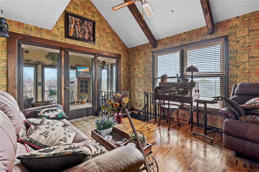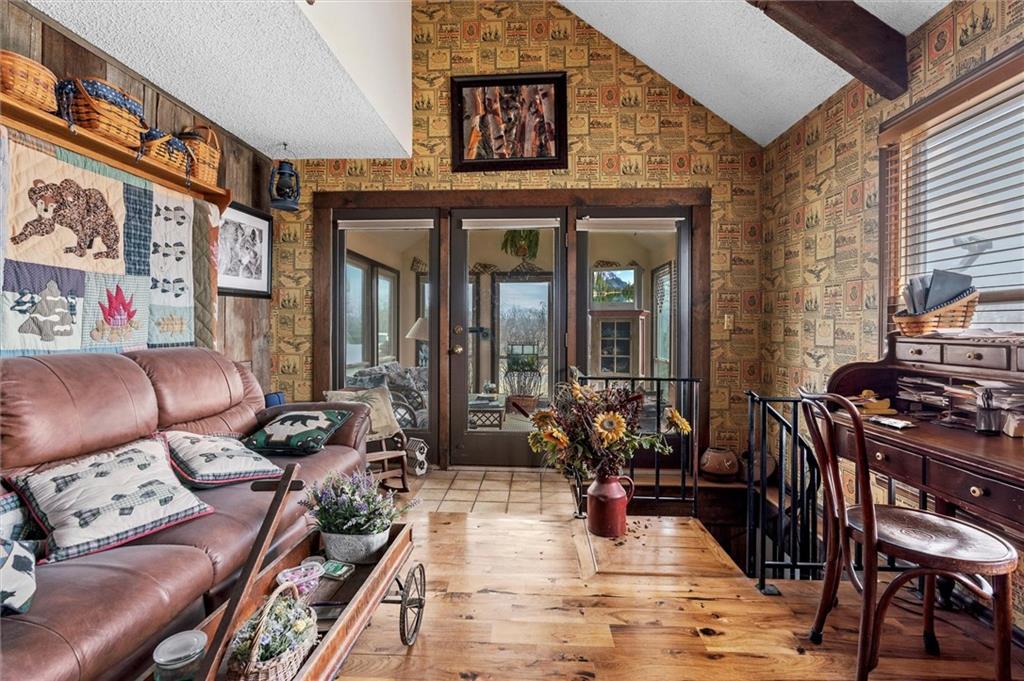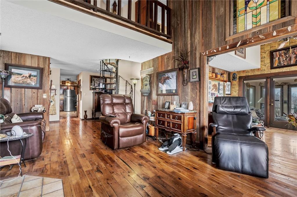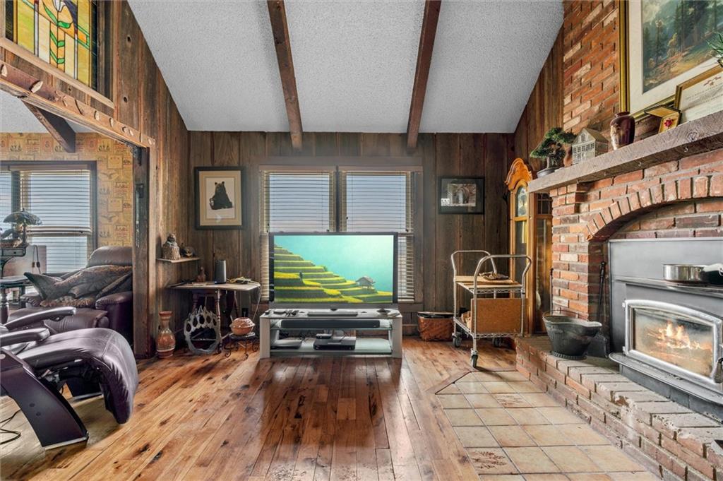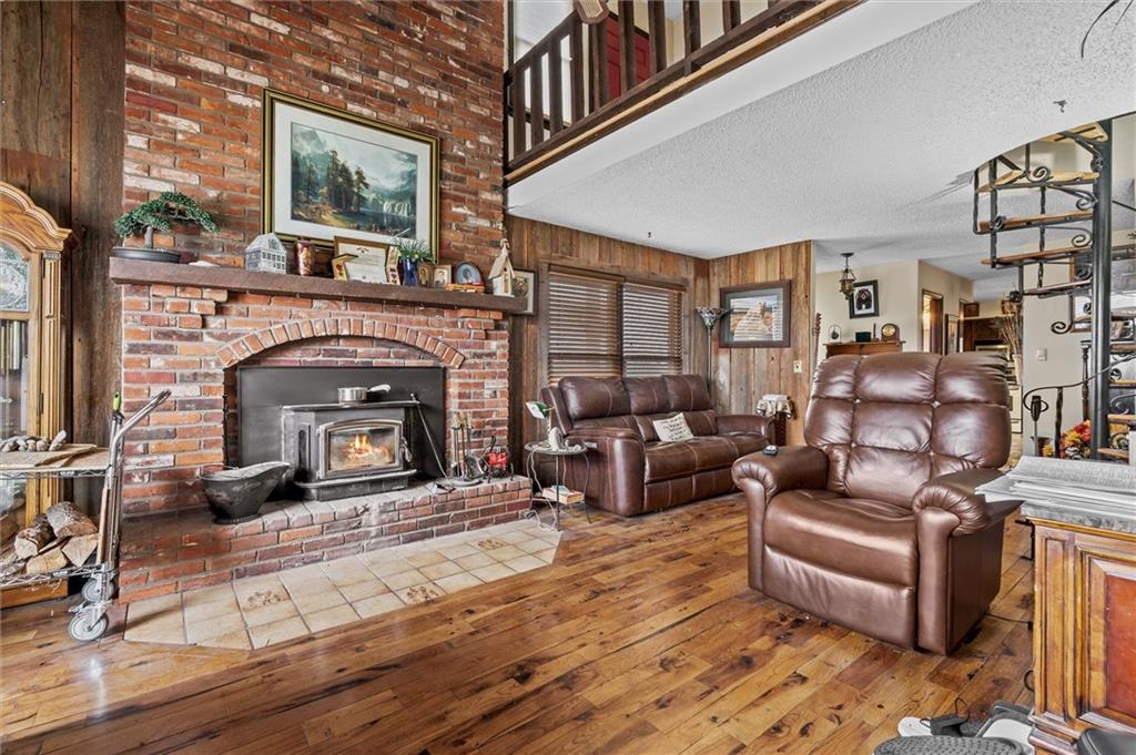 New and Improved Price! Rustic Country Retreat on 11.86 acres in Kearney Schools – Never Before Offered! Tucked away off the road with a paved driveway, this stunning country retreat offers the perfect blend of privacy, rustic charm, and modern convenience in the highly sought-after Kearney School District. From the moment you arrive, you'll be captivated by the serene setting, complete with a large pond right out front—ideal for fishing and enjoying peaceful water views. Inside, the home exudes warmth and character with gorgeous hardwood floors, barnwood walls, and a cozy wood stove that make for an inviting, rustic ambiance. The sunroom is the perfect place to sip your morning coffee while watching wildlife and taking in breathtaking sunrises. The kitchen is both functional and stylish, featuring granite countertops and newer appliances to meet your modern needs. The finished basement adds even more space and versatility, boasting a second fireplace and a unique spiral staircase connecting the levels, making for an efficient and cozy retreat. Outside, two well-sized barns (24x30 and 30x45) offer endless possibilities for horses, equipment storage, or livestock, all enclosed by good fencing that makes this property ready for your agricultural or hobby farm needs. With paved roads leading to your driveway, stunning sunset views, and complete privacy, this one-of-a-kind acreage is a rare find at this price point. Don’t miss the opportunity to make this hidden gem your own—schedule your private tour today!