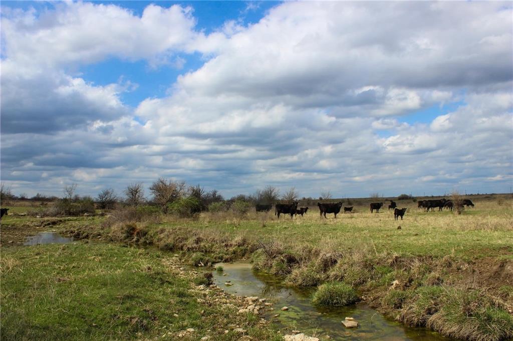 160 M/L acre property with a oil income generated through an active oil lease. 100% of the mineral rights are owned by the seller and full mineral rights are included in the sale. Fenced with livestock-grade barbed wire and featuring a freshwater pond, this parcel supports both livestock watering and wildlife. A creek meanders throughout the pasture, while mature trees border the fence lines. With road frontage along the south and east, access is effortless. Check out the trail camera photos, most recent ones are from October 2025—this property has a strong history of trophy whitetail deer hunting. Perfect for recreation, ranching, and income generation. Located right on the Allen/Bourbon County line in Savonburg, Kansas.