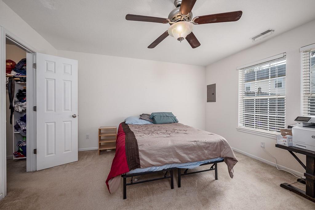 SPACIOUS 3-BEDROOM TOWNHOUSE WITH A GOURMET KITCHEN AND WALKOUT BASEMENT! This well-designed home features a tiled open kitchen and dining area with built-in oven and microwave, cooktop, tons of cabinets, oversized pantry, kitchen island, and bonus closet space—perfect for anyone who loves to cook or entertain. The master suite offers a walk-in closet and private bath, while the walkout basement leads to a covered patio and privacy-fenced yard, ideal for relaxing or pets. You’ll love how much square footage you get for the price, all in a commuter-friendly location close to major routes. A smart buy with comfort, space, and convenience!