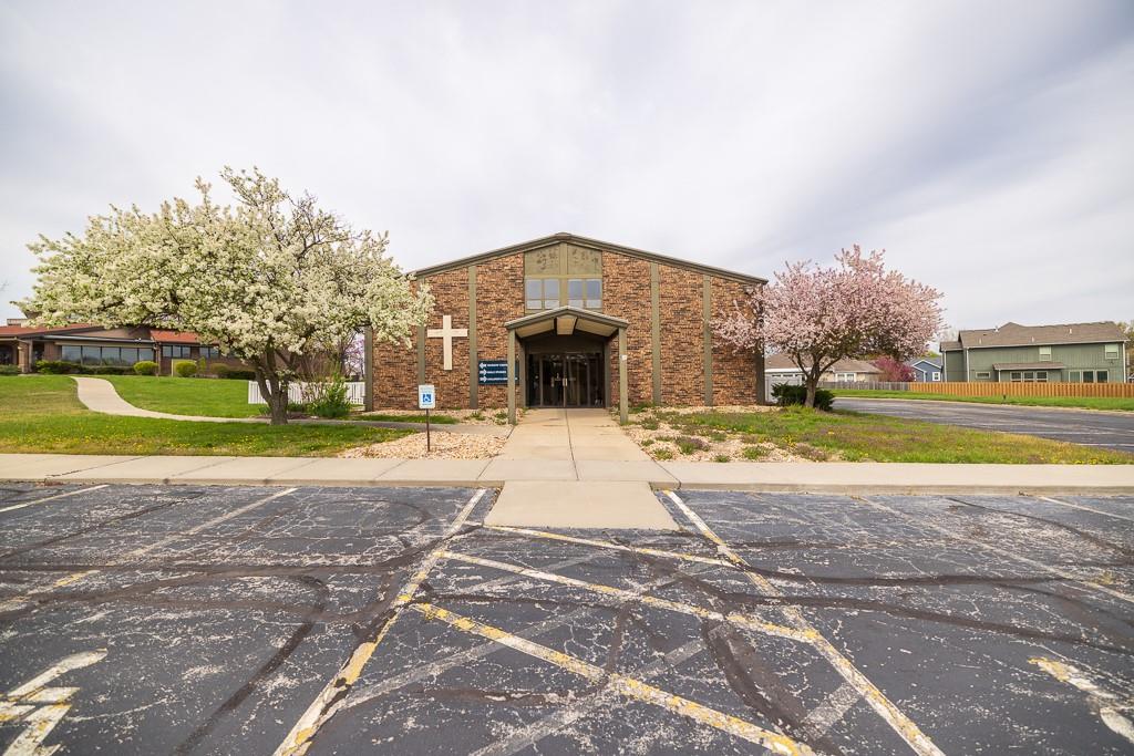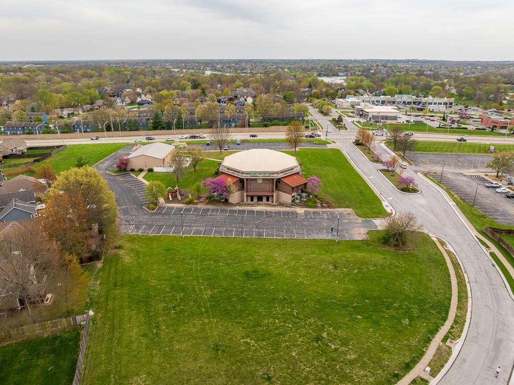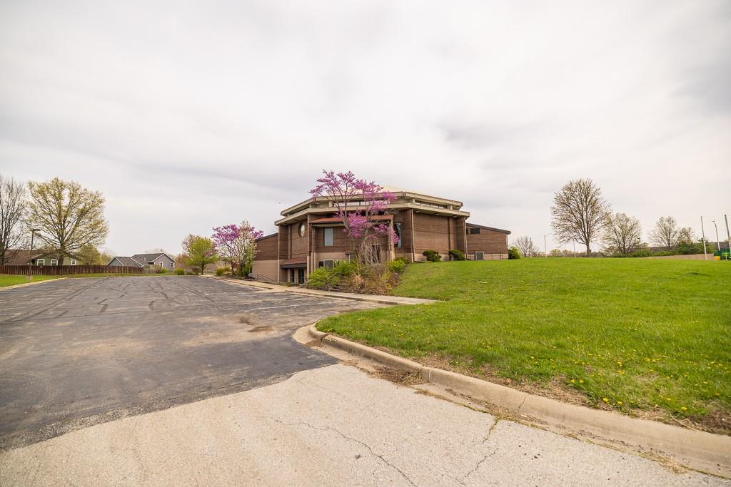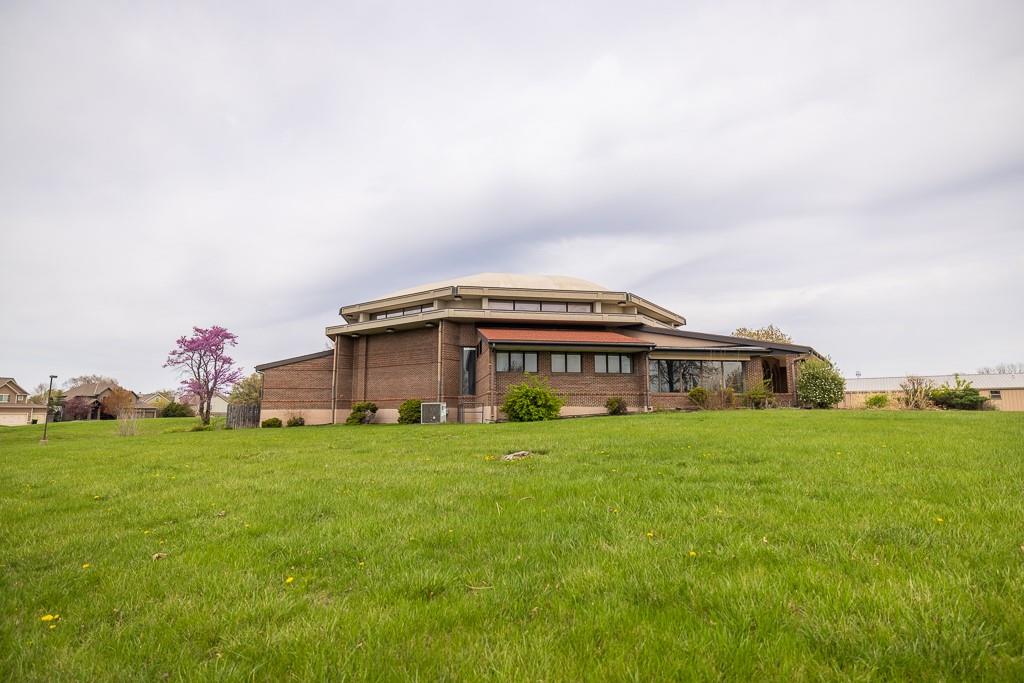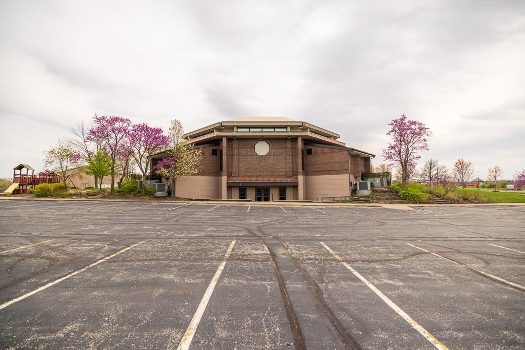 Discover a rare opportunity to own a versatile and visually striking property located just north of Raintree Lake on MO-150 in southern Lee’s Summit. Situated on a generous 4.6-acre parcel, this property offers both functionality and curb appeal, making it ideal for a variety of uses including religious, educational, entertainment, or other commercial ventures. The primary building is a commanding octagonal dome structure boasting over 16,000 square feet of space. Featuring a handsome brick exterior and a welcoming main entrance, three sets of double doors open into a spacious vestibule/lobby. The large sanctuary offers soaring ceilings, a stage, and integrated lighting and sound systems—perfectly suited for worship services, performances, or presentations. A full basement expands the usable space even further and includes a large kitchen, making it ideal for gatherings, community events, or flexible workspace. In addition, a second building on-site is a two-story, 6,500-square-foot metal structure with a brick façade. Formerly used as classroom space, it offers several rooms that can be easily adapted into offices, meeting rooms, or training spaces. The grounds are equally impressive, with dual access points, wrap-around parking, an expansive lawn, wide sidewalks, and mature trees and landscaping that enhance the overall setting. This property combines substantial infrastructure with location, flexibility, and potential—ready to accommodate your organization’s unique vision and needs.
