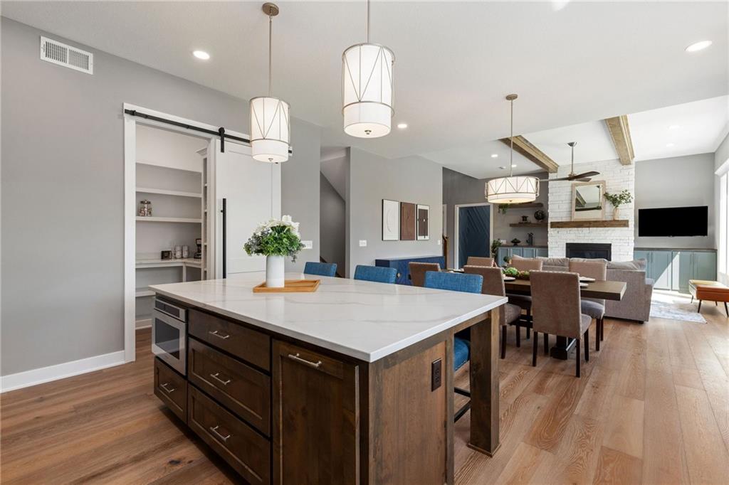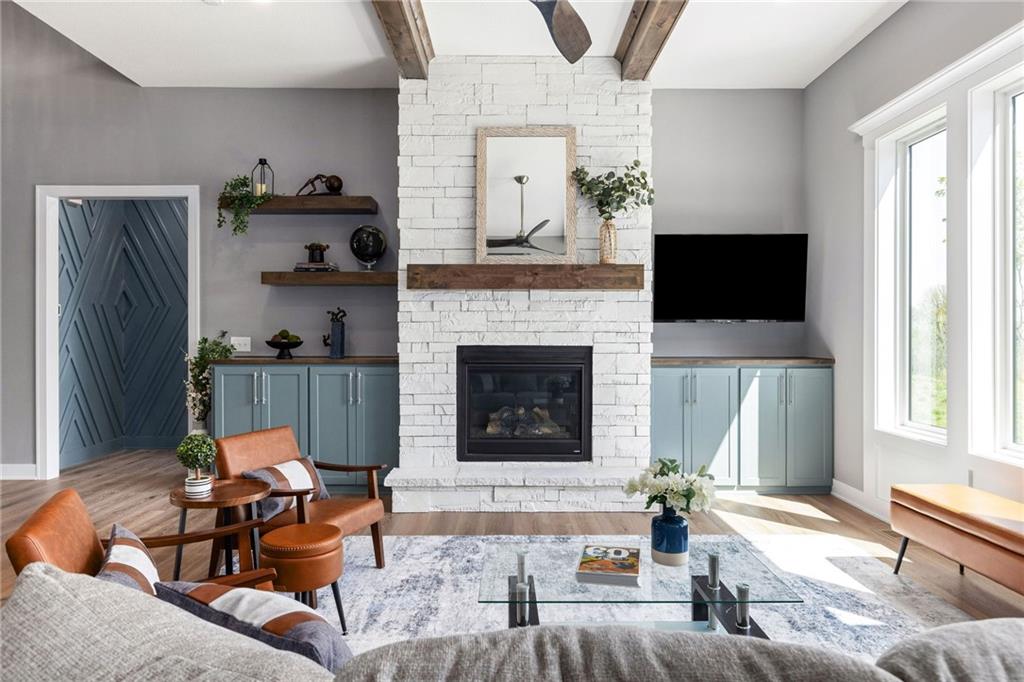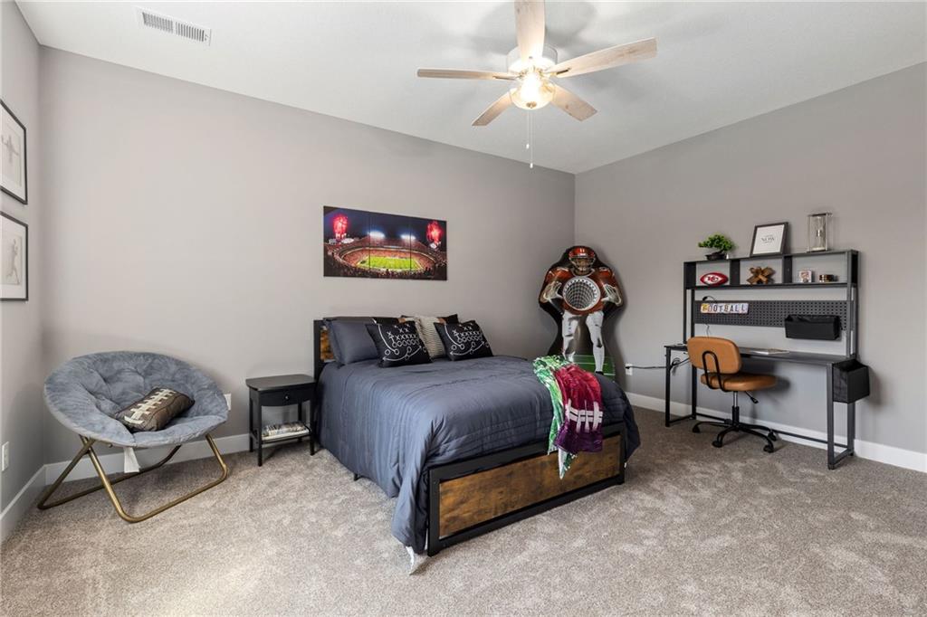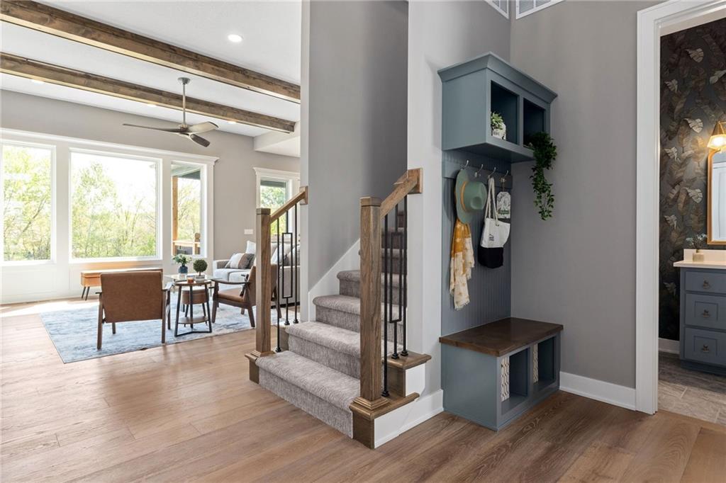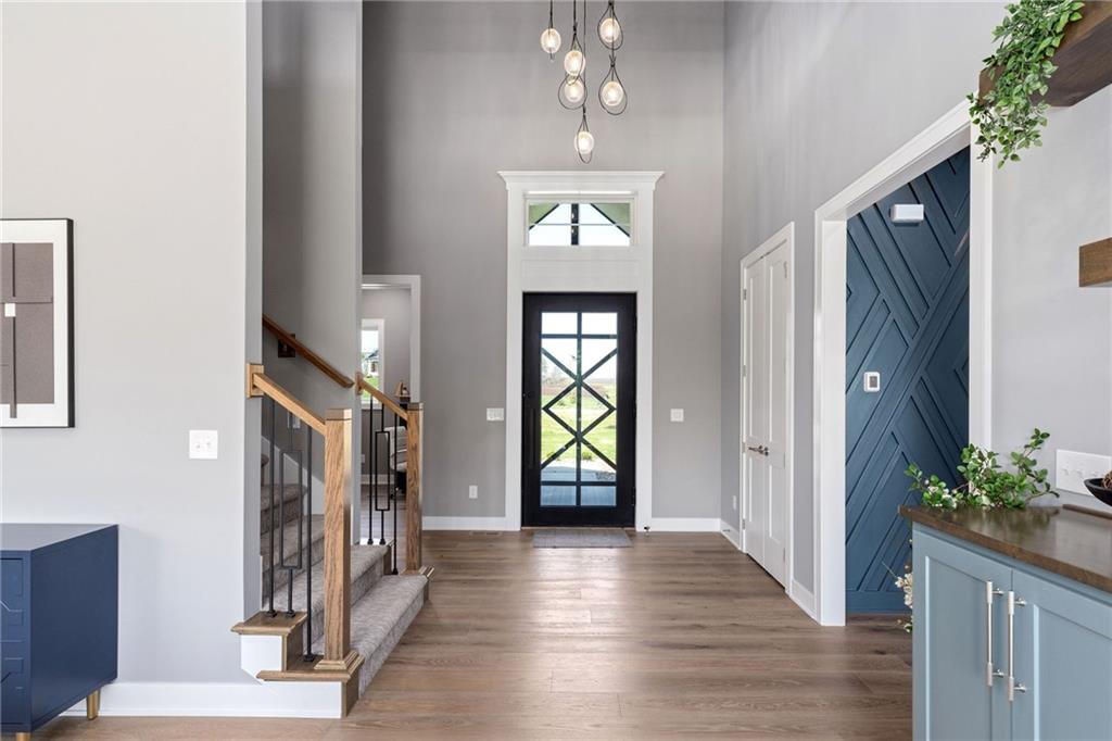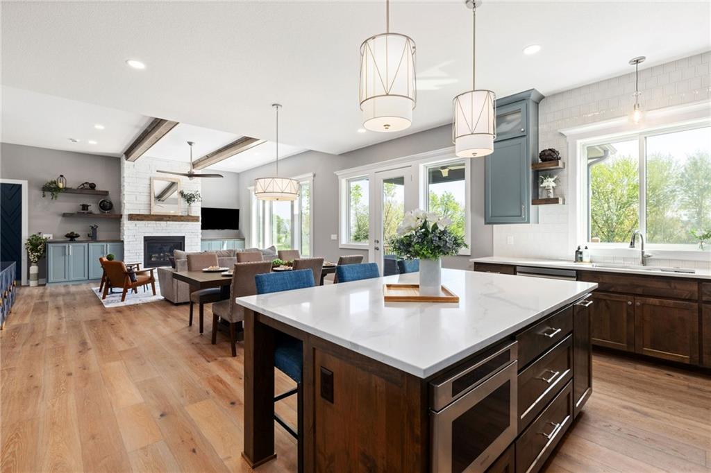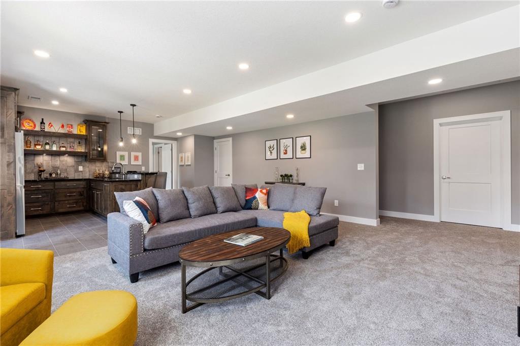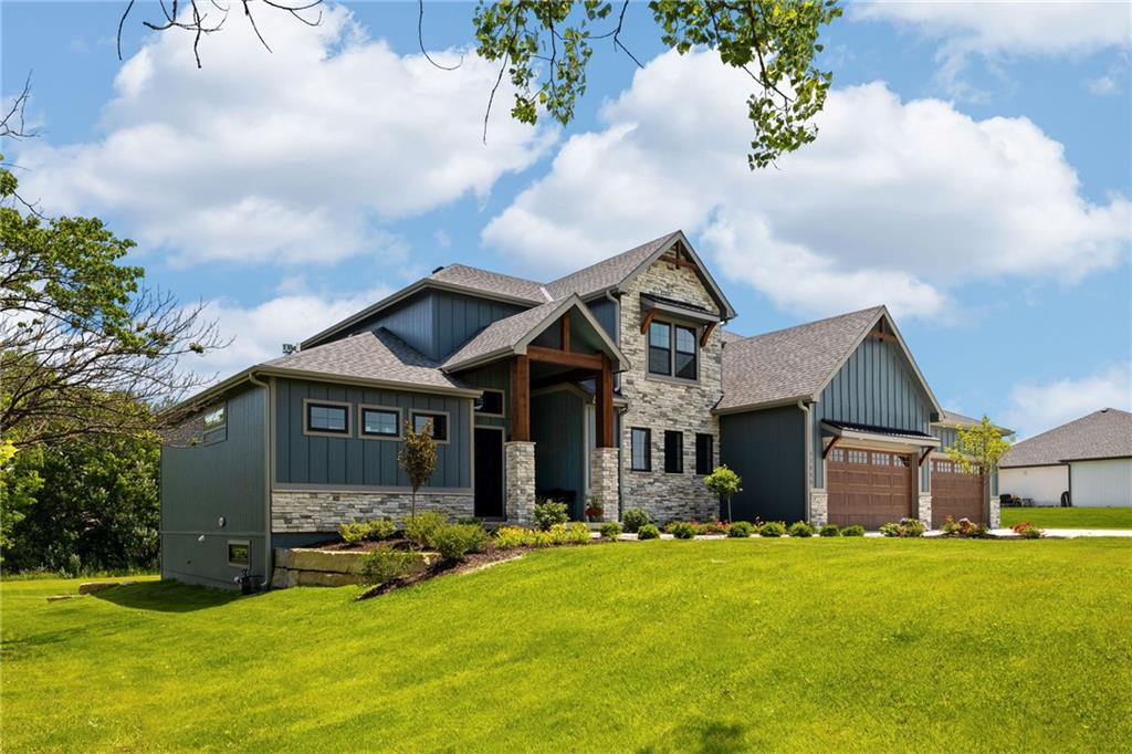 **PARADE OF HOMES WINNER!**Stunning new 1.5 story Cottonwood plan by PCDI Custom Homes. Located on 2.5 Acres with a pond! Featuring 6 bedrooms, 5.5 baths, a pocket office, finished walkout lower level with bedrooms and wet-bar plus a bonus room perfect for a home office or exercise room. Upscale finishes in the main level master bedroom, quartz counters throughout, stainless appliances, the level of detail is a must-see! Home also features an extra large 5 car garage with room for a lift too! Perfect spot for a pool out back as well! Paved roads and Basehor-Linwood Schools! Only 2.5 Miles to the new grocery store!