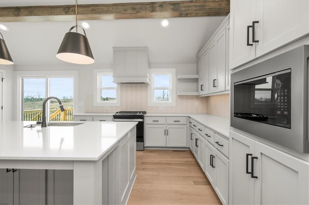 Popular Front to Back Split in Eagles Creek of Blue Springs! Close to completion - come and see the massive quartz island and well designed kitchen! Amazing master suite and large open spaces. Main floor laundry. Huge 3 car garage!