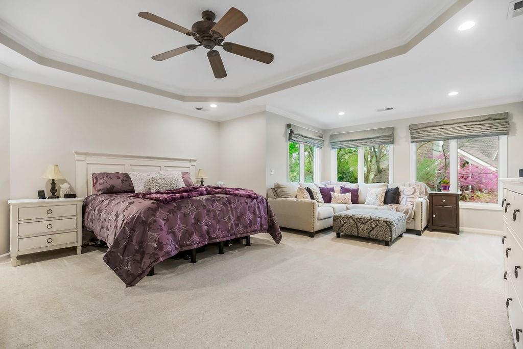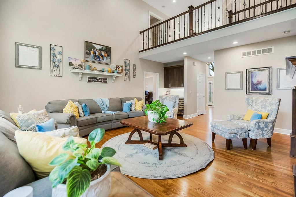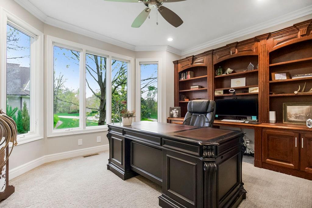 Exceptional custom home in the coveted Cedar Creek neighborhood. Situated amongst the private Shadow Lake and Shadow Glen Golf Course, beautifully landscaped and located on a 1/2 acre, corner, cul-de-sac lot, in true nature settings with mature trees. Numerous updates throughout, including the addition of an expansive screened in deck, built-in storage, exercise room, some new windows, and a newly repaired roof! This dramatic 2 Story entry with curved staircase opens up to a 5000+/- sq ft floor plan with floor to ceiling windows, wonderful for living & entertaining. The gourmet kitchen has all high-end SS appliances and newly resurfaced cabinetry. The screened in porch opens to a large paver patio w/ fire pit, for the ultimate outdoor entertainment area. The huge primary suite is a true sanctuary, with spa like bath, his and her walk-in closets and a spacious sitting room. LL offers great entertainment space with family room, rec area and wet bar, and the exercise room features a full wall wall and KC skyline mural! LL Also features ample built-in storage spaces, and the large 5th bedroom. LL walks out to paver patio area. So much to enjoy in this quality built home! Don't miss it!