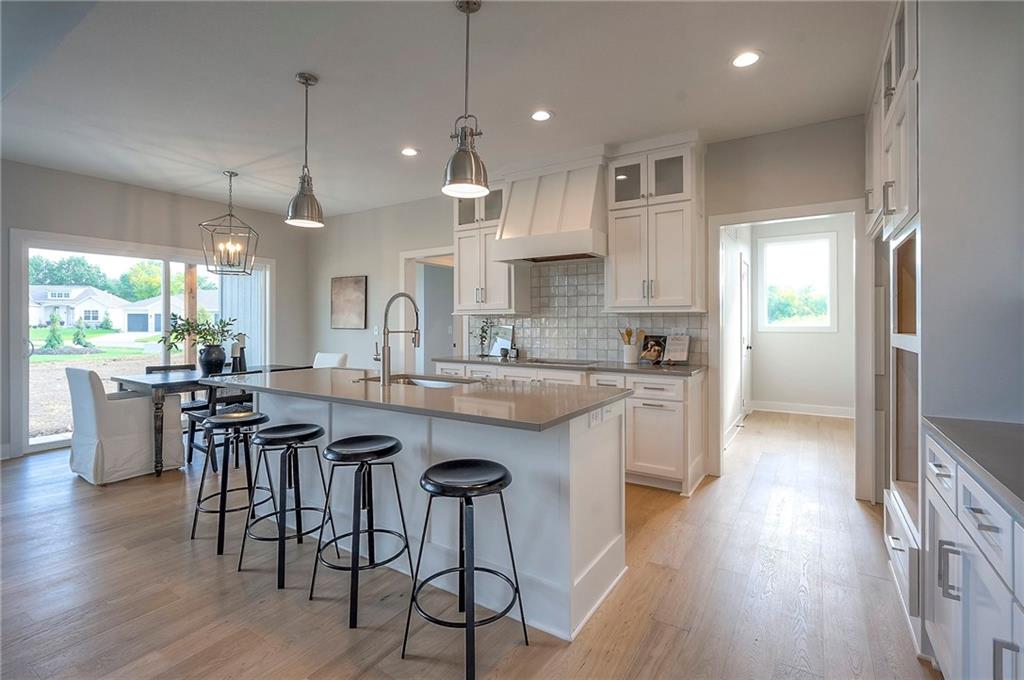 REDUCED $10K! MODEL FOR SALE! Expanded Fenwick Plan with 2 bedrooms up and 2 bedrooms down along with 3 full baths. Sitting on a cul-de-sac lot, backing east, the open floor plan centers on entertainment with custom kitchen cabinets and all quartz countertops, highlighted by a spacious kitchen island. The Main floor primary suite features a wonderful shower with a large walk-in closet which flows into the convenient laundry room. Just off the garage entrance is an abundant "boot" bench and coat closet with access to the large pantry. A second main floor bedroom and full bath sits on the back of the house behind the kitchen. The finished lower level has two bedrooms, a rec room and full bath. Oversized two car garage is 24' deep.