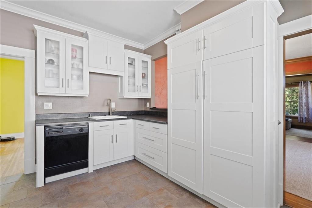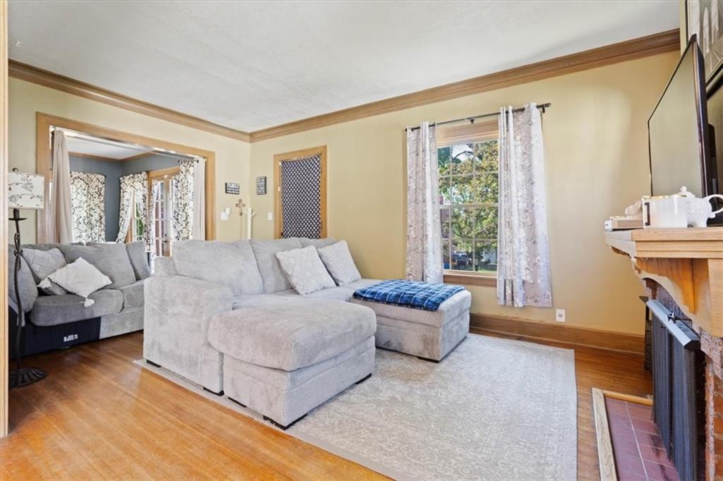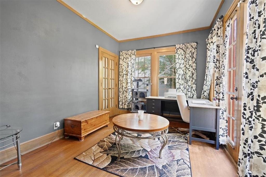This wonderful home really stands out with its tremendous character and unique charm! Inside, you'll find beautiful tall ceilings and spacious bedrooms. There's also a fantastic bonus bedroom and a full bathroom located upstairs, offering great flexibility. The kitchen is lovely, featuring updated see-through cabinets. The location is also very convenient. Adding to its appeal, the home includes energy-saving solar panels and a private backyard, perfect for relaxing. It also has a detached garage for your convenience. The property is further enhanced by mature trees and a beautiful lawn.