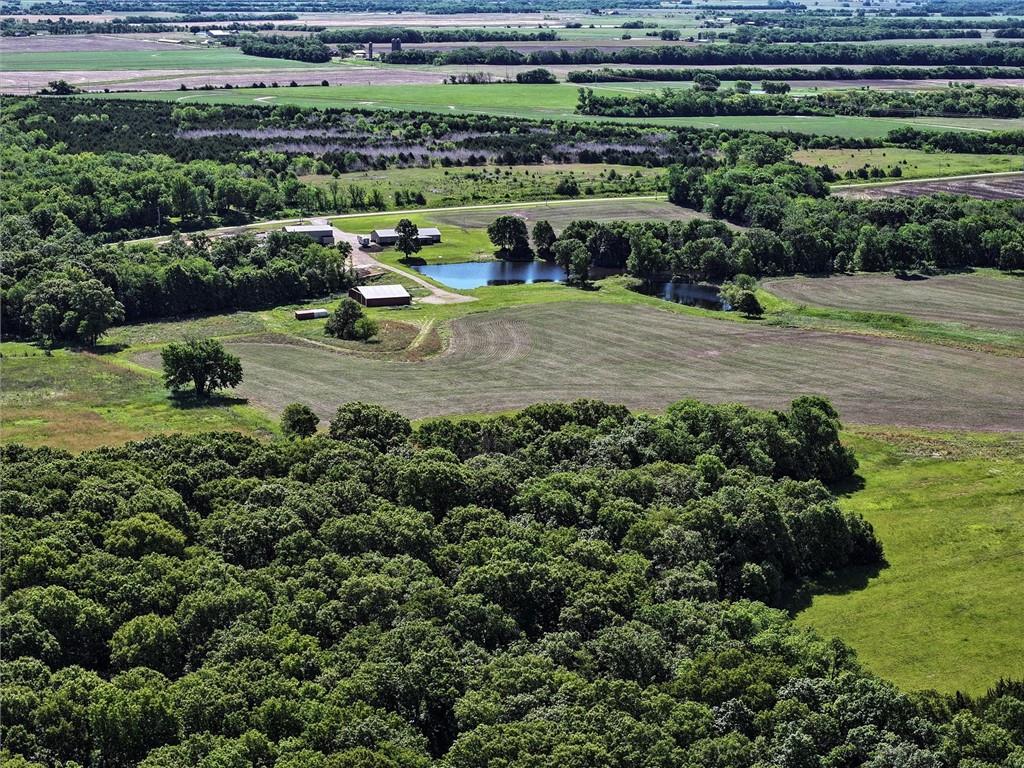 Wow! If you’ve been looking for a property that has it all look no further!! 125+/- acres with a nearly new 2400 square foot barndominium, an oversized attached 2 car garage, a huge shop, barn and two ponds! One pond is almost 2 acres! The land has about 70 acres of big, hardwood timber, a creek, approximately 30 acres of tillable land, currently planted to corn and the balance is meadows and grassy water ways. The home, which has rural water and a septic system, has a huge great room with views of the 2-acre pond, a large master suite, 2 additional, oversized bedrooms. All of the bedrooms have large walk-in closets. There is also a private office for those that work from home! You’ll be able to hunt the big Kansas whitetail buck of a lifetime and wild turkeys and you won’t have far to walk to catch your fill of bass, crappie and channel cats all on your own property! The views of the ponds and sunsets from the back patio are simply amazing and do not disappoint! The home is all electric and is pre plumbed for floor heat if one so desires to have it installed. The 40’ x 64’ shop has tall overhead doors for your equipment or camper. It has a concrete floor a wood stove. There is also a nice metal barn and a lean to shed. Both, the shop and barn have water and electricity. The property is located only ¼ mile of paved Old Highway 50, southwest of Ottawa and will make your perfect dream home or weekend getaway!