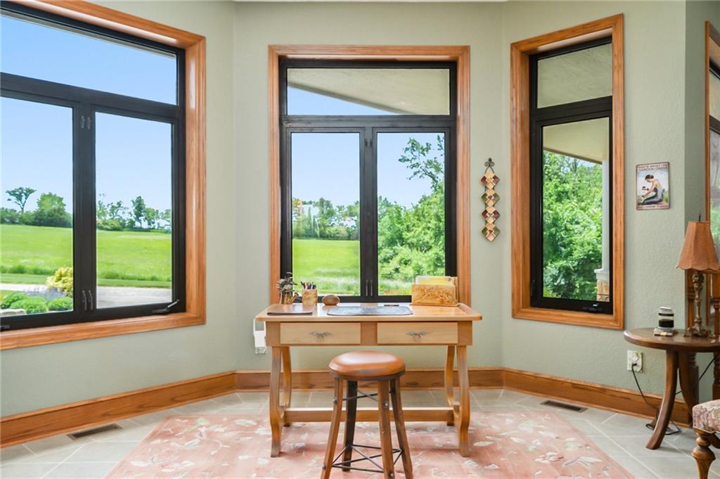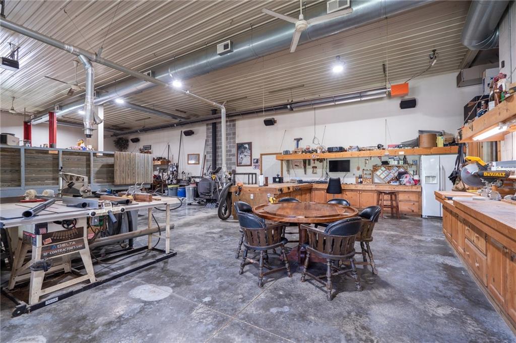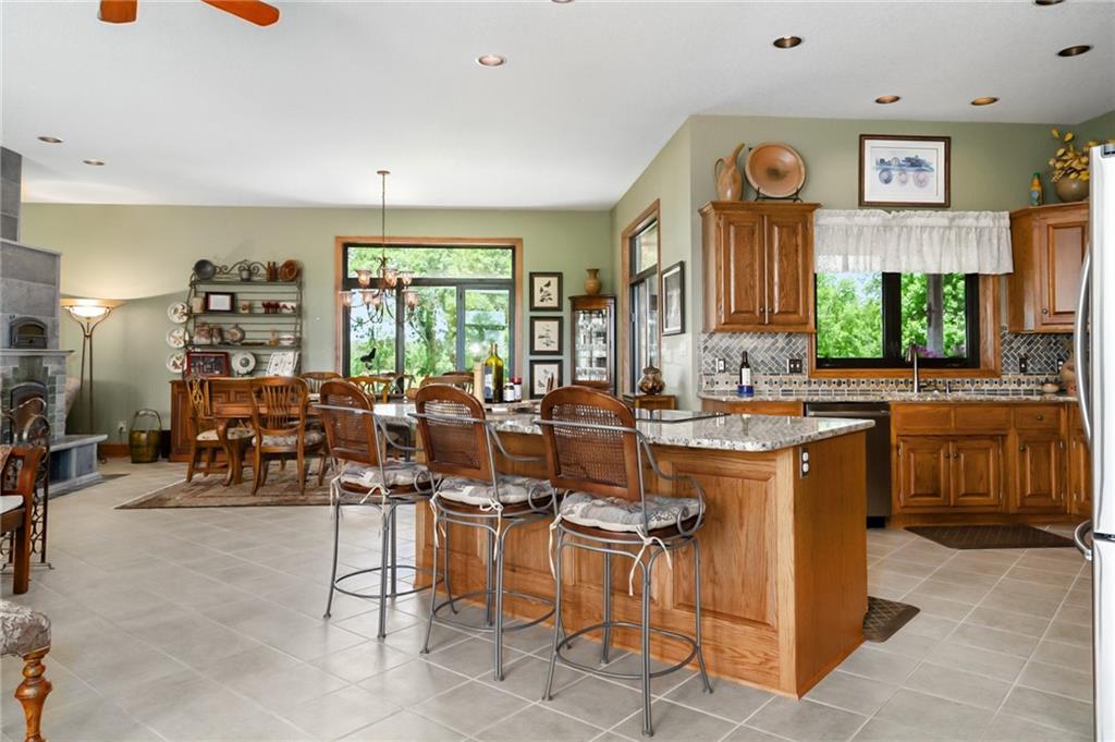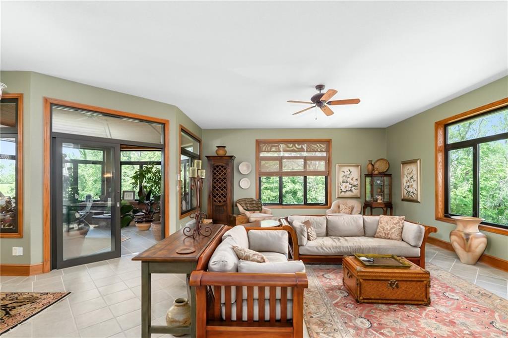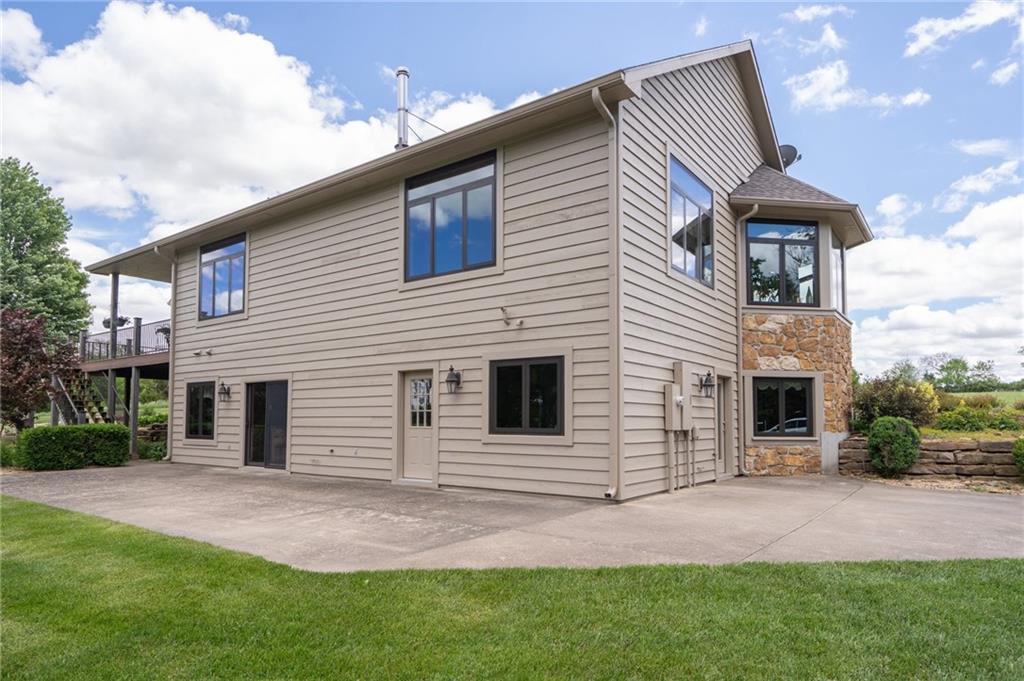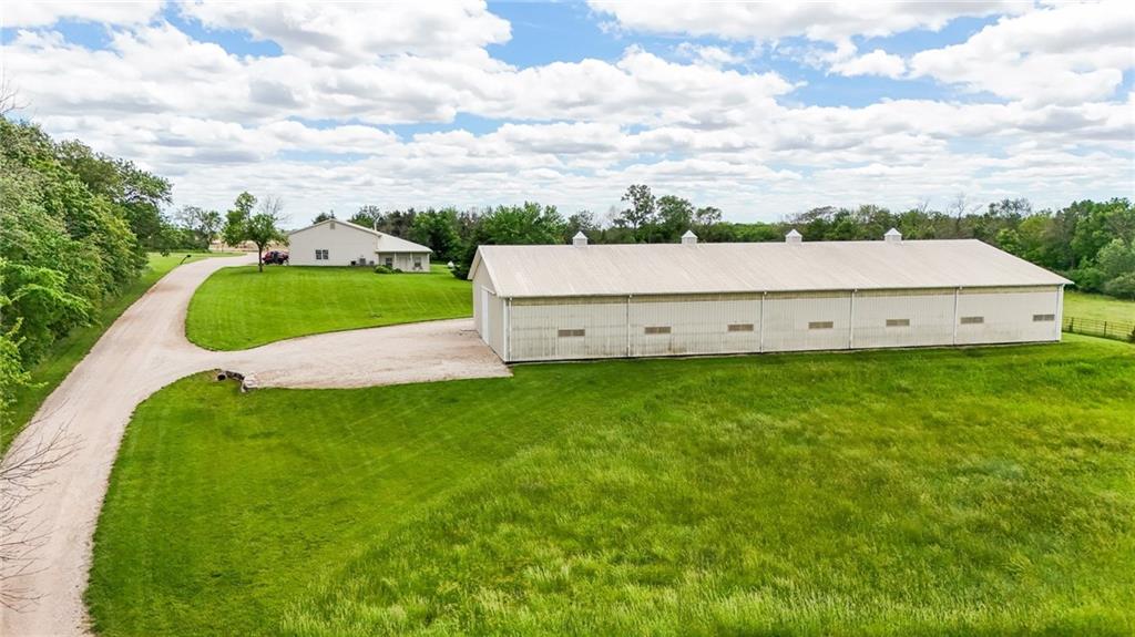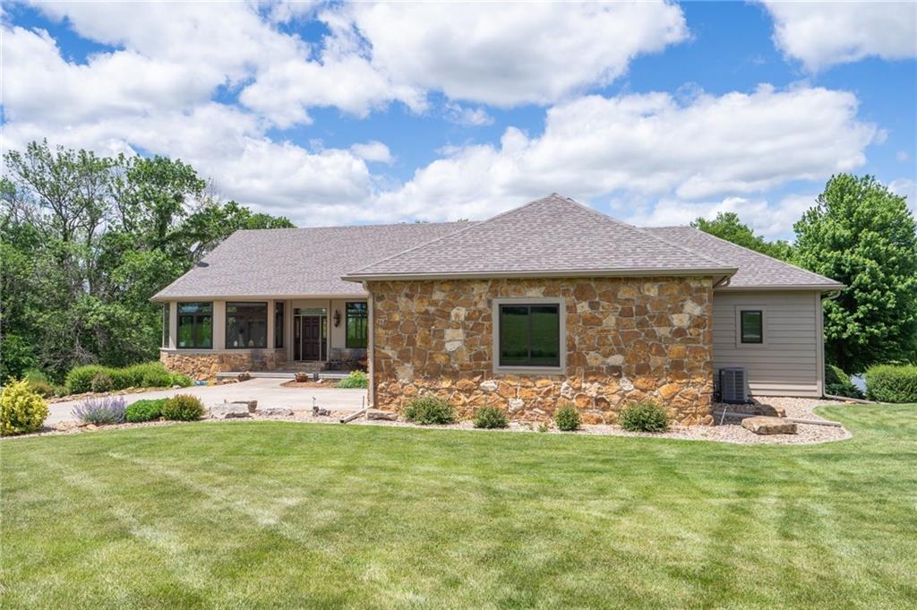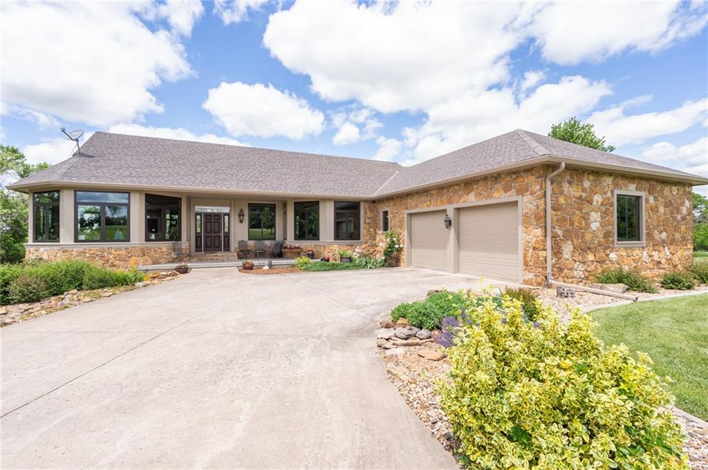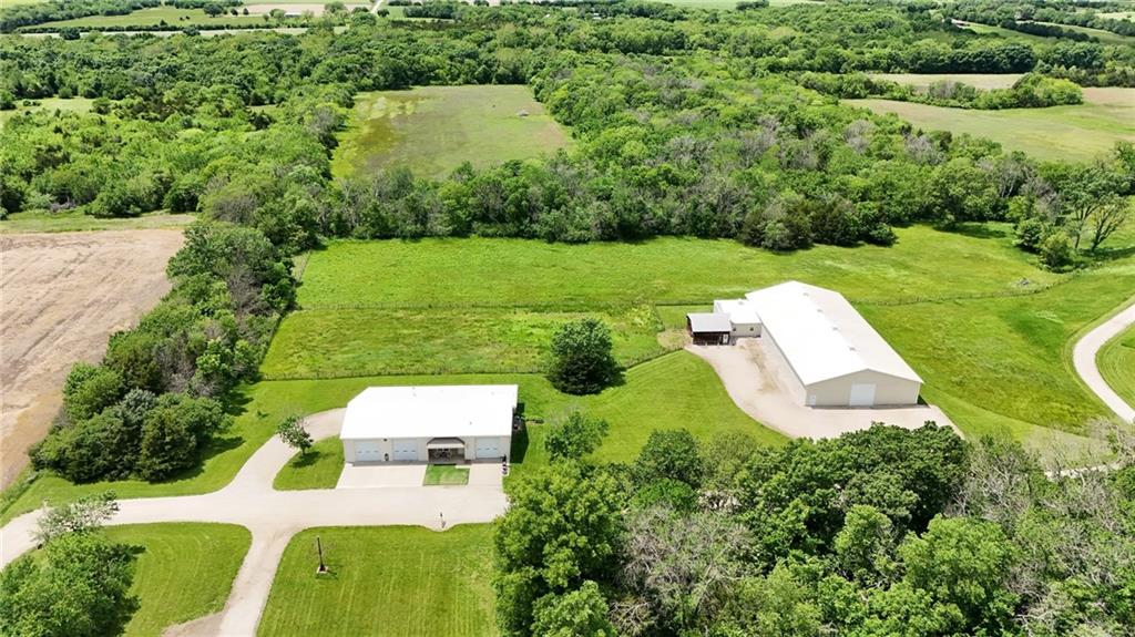 This Dream Homestead includes 80 Acres with Custom Home, Pond, Shop, ADU & Equestrian Facilities! Experience the ultimate rural retreat with this rare estate featuring a meticulously maintained, custom ranch home with walk-out basement, 7-acre stocked pond, 4800 SF workshop with apartment and equestrian amenities. Designed for comfort, self-sufficiency, and recreation, this property offers panoramic views and is located just a few miles south of Baldwin City with blacktop access and only 1/4-mile of rock road. Enjoy fishing, floating, or relaxing at the pondside covered dock, or explore trails perfect for hiking, riding, wildlife watching or hunting. The workshop is a dream setup for hobbyists and professionals alike and can accommodate guests in the 800 SF apartment. The indoor arena, stables, tack room, and pastures make it ideal for horse lovers. Whether you're homesteading, hosting guests, or seeking peace and tranquility, this one-of-a-kind property is a true lifestyle opportunity. Be sure to check out the video of the property and imagine yourself living the good life!