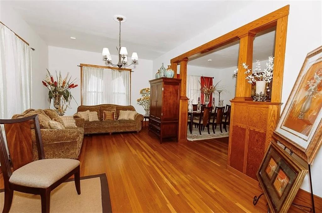 Upon entering this beautiful historic home, you're greeted by a beautiful staircase that sets the tone for the home's historic character. hardwood floors, intricate woodwork, and high ceilings throughout are just a few things that make this house charming. The large covered front porch offers a serene spot to enjoy the outdoors, perfect for morning coffees or evening relaxation. Inside, the unique open-concept design seamlessly blends living, dining, and kitchen areas. The generously sized backyard provides ample space for parking and outdoor activities. At the rear, a well-maintained, finished two-car garage offers additional storage or workspace, enhancing the home's functionality. An added bonus is the finished loft area—an open, versatile space awaiting your personal touch. Whether you envision a cozy reading nook, a home office, an extra bedroom, or another living space, this loft offers endless possibilities to suit your lifestyle. This residence is more than just a house; it's a piece of history waiting to welcome you.