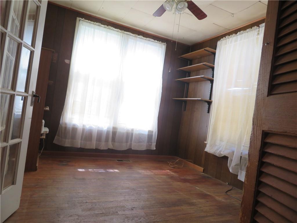 Step into the charm of yesteryear with this delightful 3-bedroom, 1-bath home full of character and warmth. The large living room welcomes you with a cozy window seat, wood floors, and classic wall sconces—perfect for relaxing or entertaining. Unique built-ins add both charm and functionality to the bathroom and hallway. Bedrooms 2 and 3 are connected by French doors, offering flexible use as a sitting room, office, or private suite. The full attic provides excellent storage potential, while the walk-up/walk-out basement with interior access adds convenience and even more space. Enjoy quiet evenings on the covered front porch or take advantage of the carport and backyard shed for your storage needs. All set on a generous corner lot with plenty of room to grow, garden, or play. This home blends timeless features with everyday practicality—come see the possibilities!