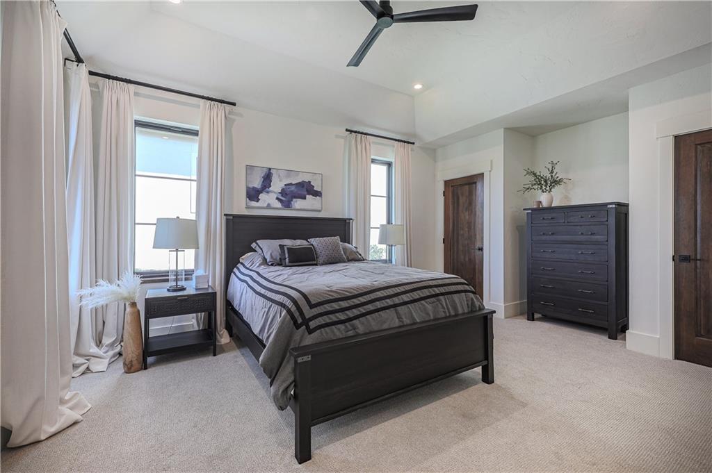 Absolutely stunning & thoughtfully curated, this former Owen Homes model in Eagle Pointe Preserve defines luxury living—ideally positioned along the lush fairways of Shoal Creek Golf Course, overlooking Hole 7. Every inch of this reverse 1.5-story masterpiece showcases intentional design, high-end finishes, & remarkable attention to detail. Step inside to discover an open & airy main level where soaring ceilings and reclaimed wood accents—sourced from Utah’s historic Great Salt Lake trestle bridge- bring warmth & timeless character. The chef’s kitchen is both elegant & functional, featuring high-end appliances, custom soft-close cabinetry, & the oversized island offers ample prep space & casual seating, while the full prep pantry keeps the kitchen pristine w/addl counters, built-in storage, a secondary sink, & appliances. Just off the kitchen, the expansive dining area is framed by panoramic sliding doors that lead to a covered outdoor living space—perfect for dining al fresco or simply taking in the golf course views. The main level also includes a luxurious primary suite, a private home office, a secondary bedroom suite, & thoughtful design elements throughout, including hand-troweled walls & 8’ solid wood doors. The lower level is an entertainer’s dream w/a fully equipped sports bar, beverage station, & a built-in media wall ideal for game days. Just steps away, a private theater room offers a true cinematic experience, while a dedicated fitness/flex room adapts to your lifestyle needs. Three additional bedrooms & full bathrooms provide comfort & privacy for guests. Outside, over $50k in professional landscaping & a fenced-in yard create a private, resort-like setting. Enjoy evenings around the gas fire pit, grill on the built-in gas line, or simply relax & take in the peaceful surroundings. The suspended three-car garage includes a 240V outlet for an electric vehicle, & the home is wired w/built-in surround sound, smart lighting, & security system.