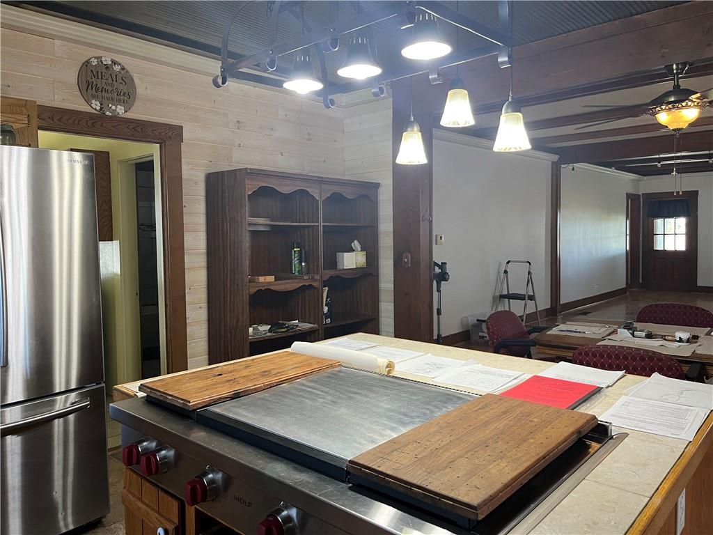 This home sets off a black top road, you then take a private road to the home. Come make every dream of living in the country come true. The most beautiful setting among trees. Lots of buildings to extend your dreams of a hobby farm. The home also offers a wood stove outside the home that can be hooked up also for heat into the house. This has been unhooked at this time. The property has a well for all your water needs. There is one waterer for livestock. And outside hydrants for all your other water needs outside of the home. Some Shops have overheard doors and concrete floors. Barns for horses. Shed for chickens. Storage for equipment. The home offers a wolf gas cooktop stove with a large center grill for all those early morning pancakes. On those cool days you will love the wood stove in the family room. On those special holidays you will want to start a fire in the beautiful fireplace for all the family to enjoy. Come let us show you this home today.The upstairs bedroom can be made into 2 bedrooms making the home a 3 bedroom 2.5 bathroom home
