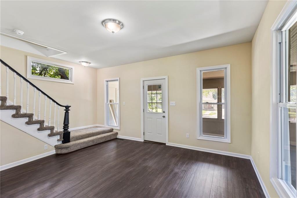 Check out this huge, recently remodelled, 4 bedroom 1 and a half bath home nestled just minutes away from downtown Ottawa, Ks! This home offers an abundance of open space, two living areas, natural light, and beautiful hardwood floors throughout the main level. The main level has plenty of space for gatherings, and so much more with a beautiful screened in porch/sunroom off the front entrance. Upstairs you will find 4 large sized bedrooms with a finished bathroom. The outside of this property has a big two car detached garage with space for tools, crafts, or whatever hobbies you have! The property also has additional parking beside the garage and behind it as well.
