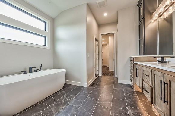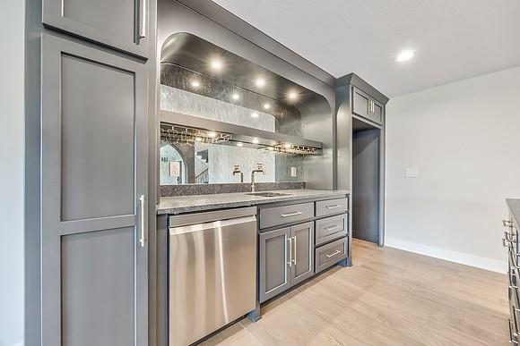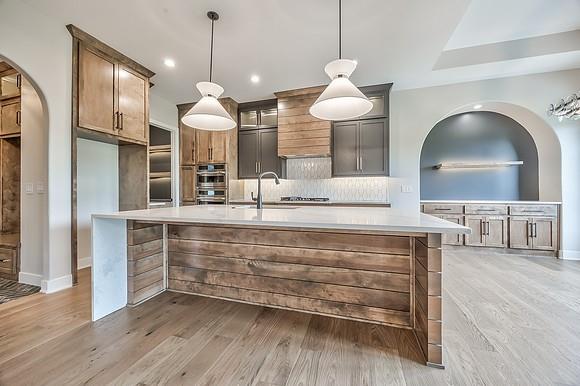Wheeler Homes presents the Bayview Reverse on lot 77 in Wild Horse! This stunning reverse 1.5 story home sits on a walk out lot at the end of the cul de sac. The amazing plan showcases an open concept, main floor living in luxury. The great room boasts vaulted ceilings, a custom ceiling beam, built in shelves, and a gas fireplace. The gourmet kitchen is perfect for entertaining, complete with a large island, built-in appliances, custom cabinets, and an expansive walk-in pantry. Enormous covered deck perfect for hosting. The main level primary suite offers a soaker tub, a walk-in shower, generous closet space, and convenient access to the laundry room. Oversized 4 car garage. The walkout lower level showcases a full bar opening to the spacious family room. Two additional bedrooms accompanied by 2 full bathrooms. Scheduled for completion in 2026, this home offers the perfect opportunity for buyers to make some selections. Wild Horse is in the award-winning Blue Valley School District, walking distance to Wolf Springs Elementary and the brand-new Wolf Springs Middle School opening in 2026. Don’t miss your chance to own in one of the area’s most anticipated communities! Close to Bluhawk shops and easy highway access. Optional finishes shown in the photos.