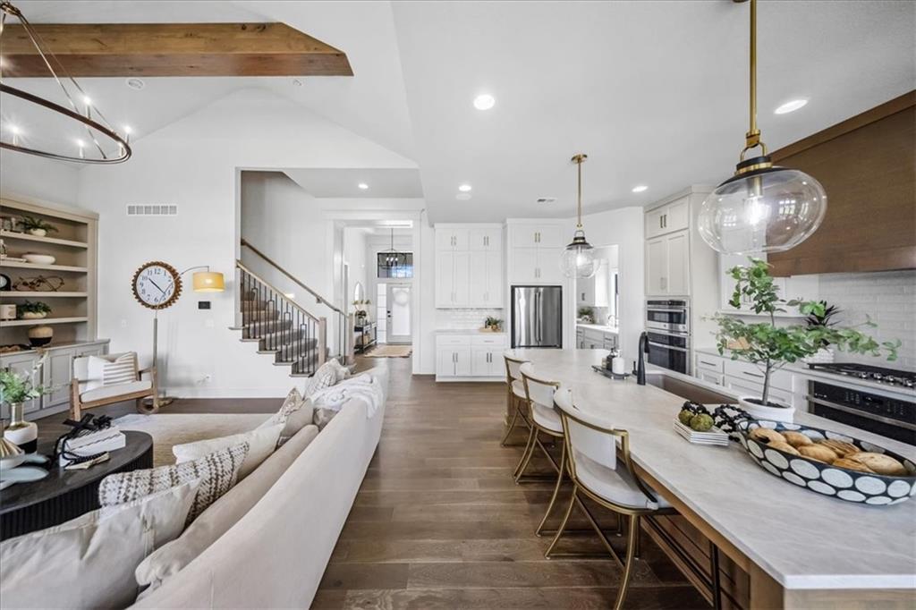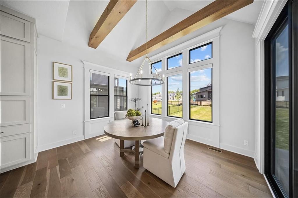 Incredible New Price! Enjoy the holidays and luxury living in sought-after Century Farms! This stunning 1.5-story, 2 yr old home, blends timeless elegance with modern design and is packed with high-end upgrades that set it apart. Bathed in natural light, the open layout features soaring vaulted ceilings with rustic wood beams and 8’ interior doors for a grand, airy feel. The gourmet kitchen with prep area, double ovens, large pantry and spacious great room flow seamlessly to a large vaulted covered patio—perfect for entertaining or relaxing outdoors. Recent Updates include: custom window treatments throughout, fenced backyard, a water softener and epoxy garages. Thoughtfully designed for comfort and style, this home includes a freestanding tub, his-and-hers walk-in closets, secondary bedrooms with all their own ensuite, double laundry, and expanded garage for ultimate convenience. The real stone exterior and sleek black windows offer incredible curb appeal on a spacious, level lot—ideal for a future pool. Located in one of Overland Park’s premier neighborhoods, Century Farms offers resort-style amenities including a sparkling pool with slide, pickleball courts, family center, fitness room, fire pit, play areas, community garden, and more. Just minutes from top-rated schools, Heritage Park, shopping, and the Coffee Creek trail system—with quick access to Hwy 69 off 167th Street. Why settle for standard when you can have standout? This is more than a home—it’s a lifestyle. Schedule your private showing today!