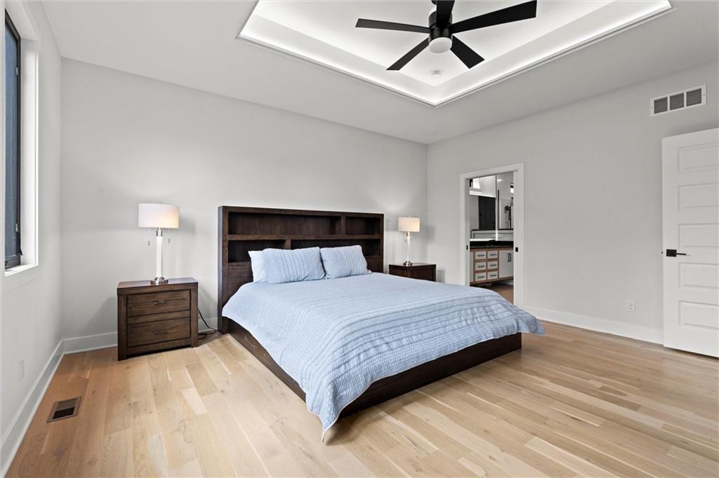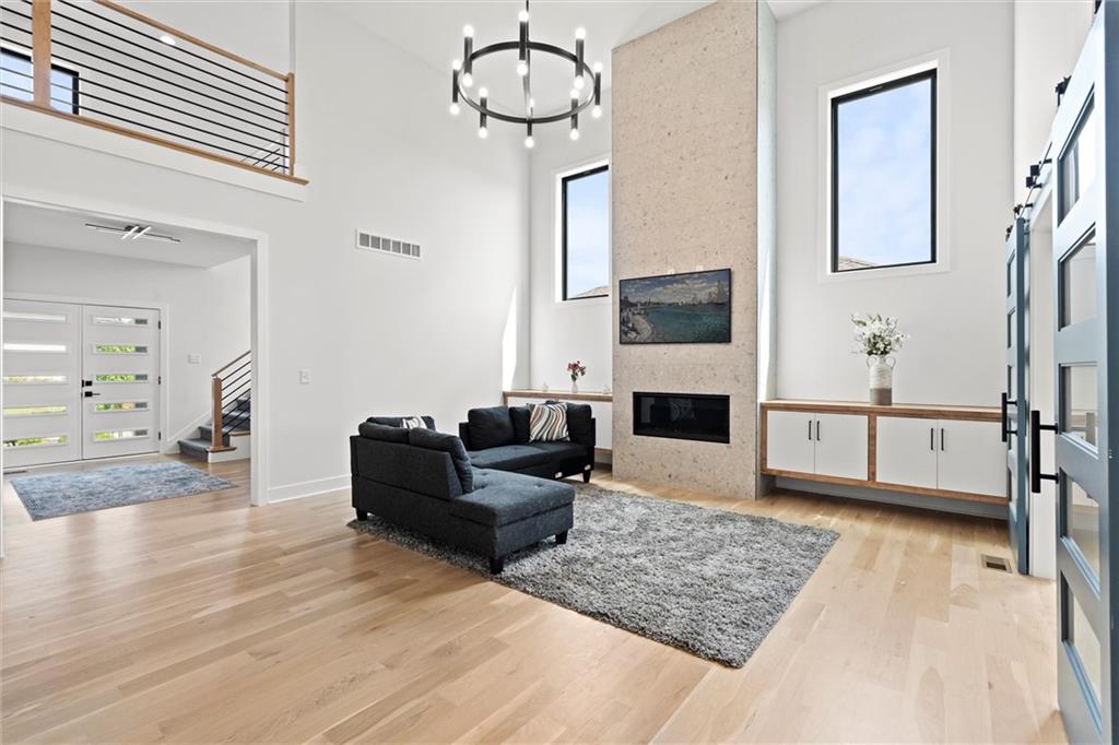 No need to wait for a new build, this home is even better! This property offers an open floor plan with white oak wood floors throughout the main living area and has large windows galore + glass doors that flood the space with natural light. The kitchen is equipped quartz countertops, hand crafted maple cabinets, gas cooktop, double ovens, built in office station, oversized butler pantry (must see), stainless steel appliances, oversized island, and a private breakfast/coffee bar. Great room with soaring ceilings, and fireplace. The main level office/den is the perfect touch! Spa like Master suite with bathroom that has a standing tub inside the ginormous walk-in shower w/dual showerheads, and a HUGE walk-in closet with direct access laundry. Second level has 3 spacious bedrooms, 2 full bathrooms, amazing loft area, and second laundry. The walkout basement is very large, stubbed for a full bathroom, and ready for your special touches! There are covered decks on the main level and lower level overlooking a greenspace with walking trail. Coming soon!!! Top of the line amenities featuring swimming pool, mini golf, sports courts and more! In the meantime, you are steps away from Black Hoof Park that offers an array of lovely amenities such as boat rentals, fishing, playgrounds and beautiful scenery to relax and enjoy! This home has tons of smart features such as app-controlled lights, garage door opener, thermostat, and ceiling fans! The Anderson Diamond energy efficient windows put a bow on this gorgeous home with very high efficiency and very low utility bills! Just minutes away from Lenexa City Center that has shopping, restaurants, and lots of fun activities for everyone! Also, located in Olathe Schools where you can guarantee one of the finest educations in KC! The HOA dues include mowing, and snow removal making this so convenient for busy lifestyles! Come see this beautiful home and fall in love!