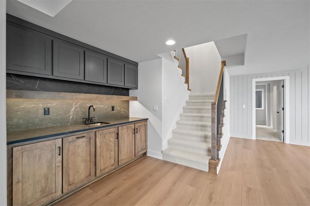 The Riviera by SAB Construction is all about wide open spaces and plenty of bedrooms for everyone. The great room is open to the kitchen and dining area. High ceilings and large windows make the great room feel even bigger. A generously sized island and pantry, and loads of cabinetry make the kitchen great for family and entertaining. At the garage entry is a mud bench, laundry room and closet for plenty of storage options. The primary suite has a four piece bathroom and an extra large closet. The main floor covered deck is accessible from the dining area and the primary suite. The main floor also has a guest bedroom with complete bath. The lower level has tons of rooms for an extra large family room, wet bar, a powder room, two extra bedrooms with a shared shower and private vanities.