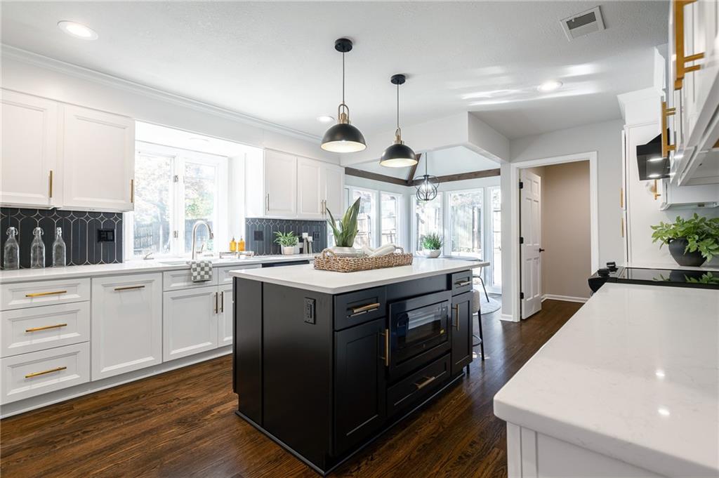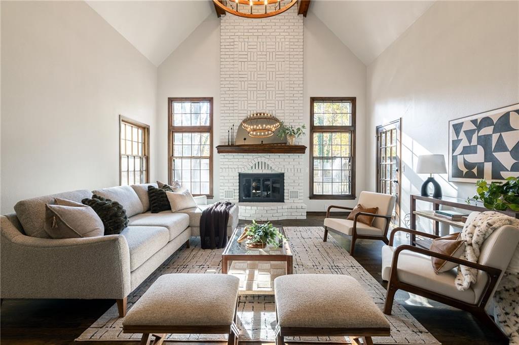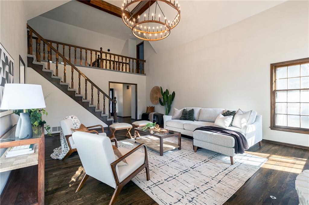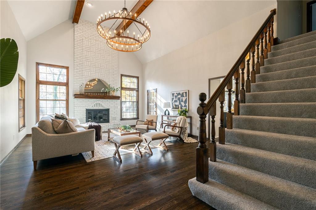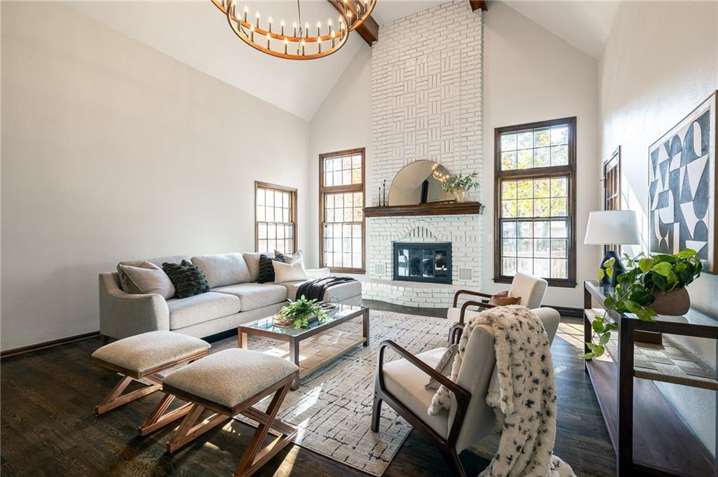 Welcome to this refined retreat in nestled in Claymont North. This 5-bedroom, 4.5-bath residence offers 4,000 square feet of thoughtfully designed living space, blending privacy, sophistication, and convenience with easy access to major highways and the airport. Step inside to soaring vaulted ceilings on the main level with recently installed hardwood flooring throughout. Recent upgrades include a stunning redesigned kitchen with quartz countertops, and a vaulted breakfast area surrounded by windows. Brand new appliances make daily living and entertaining a breeze. The luxurious primary suite features large windows, plush carpet, and a spa-like bath with tall cabinetry, soaker tub, walk-in shower, and his and hers walk-in closets. You will love the setting room between the master bedroom and bath where you can enjoy a cozy book by the fireplace. The expansive lower level is an entertainer’s dream with a gas start fireplace, full wet bar with sink and fridge, suspended garage for workshop and tornado shelter, and ample storage. Two secondary bedrooms offer flexibility and comfort for guests or teens that like to have their own space. Additional highlights include an upstairs loft for a children’s play place or office and two bedrooms with main floor laundry. Just minutes from the charm and amenities of Briarcliff Village—this exceptional home is not to be missed.