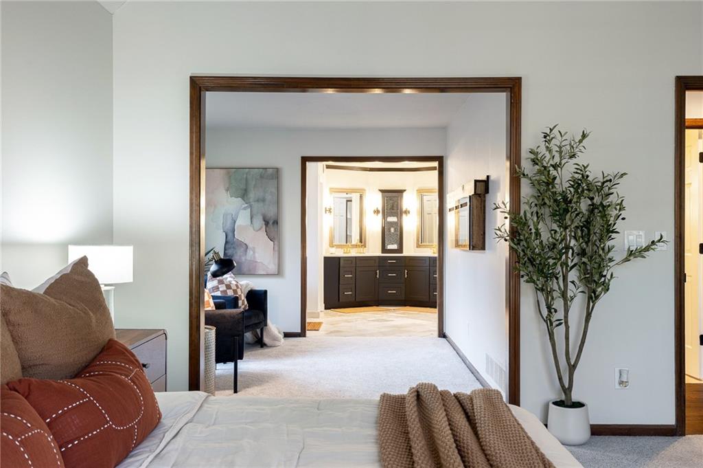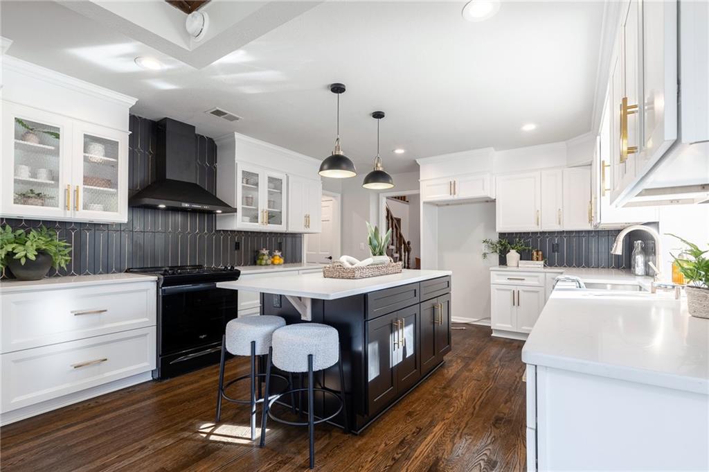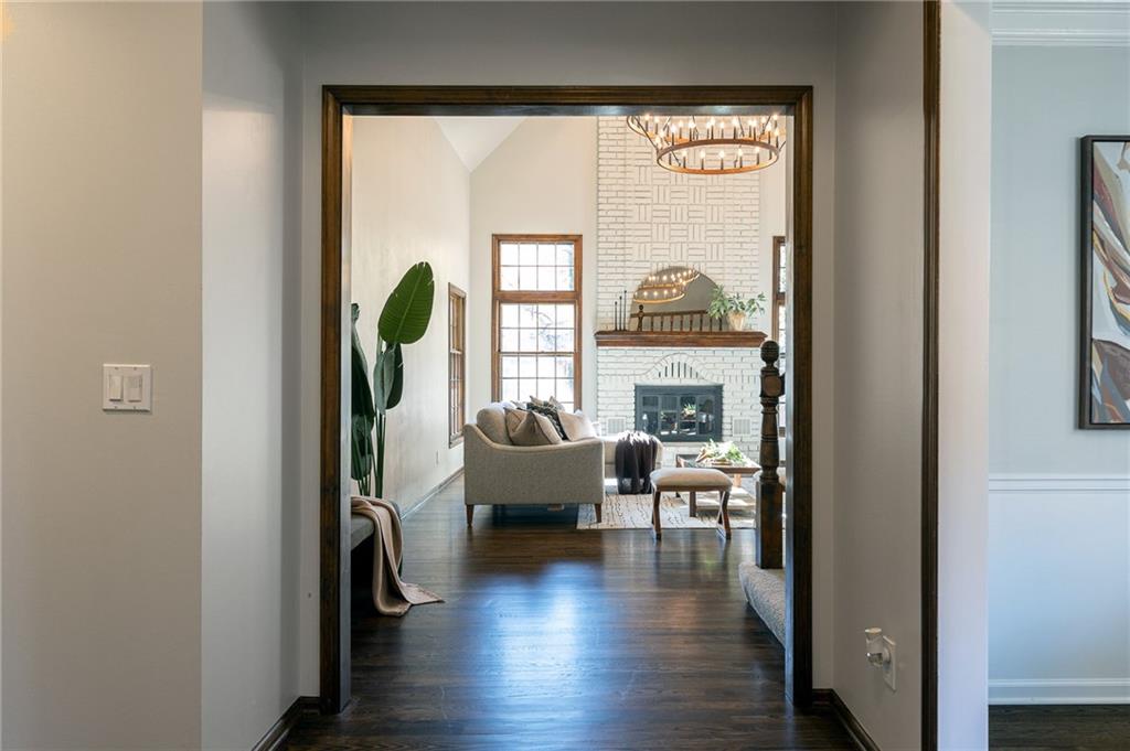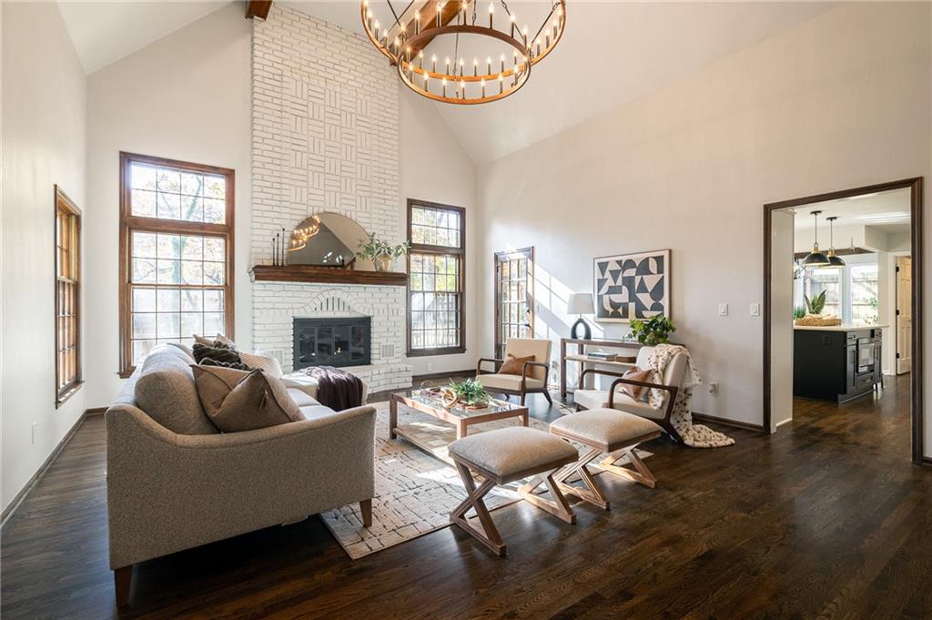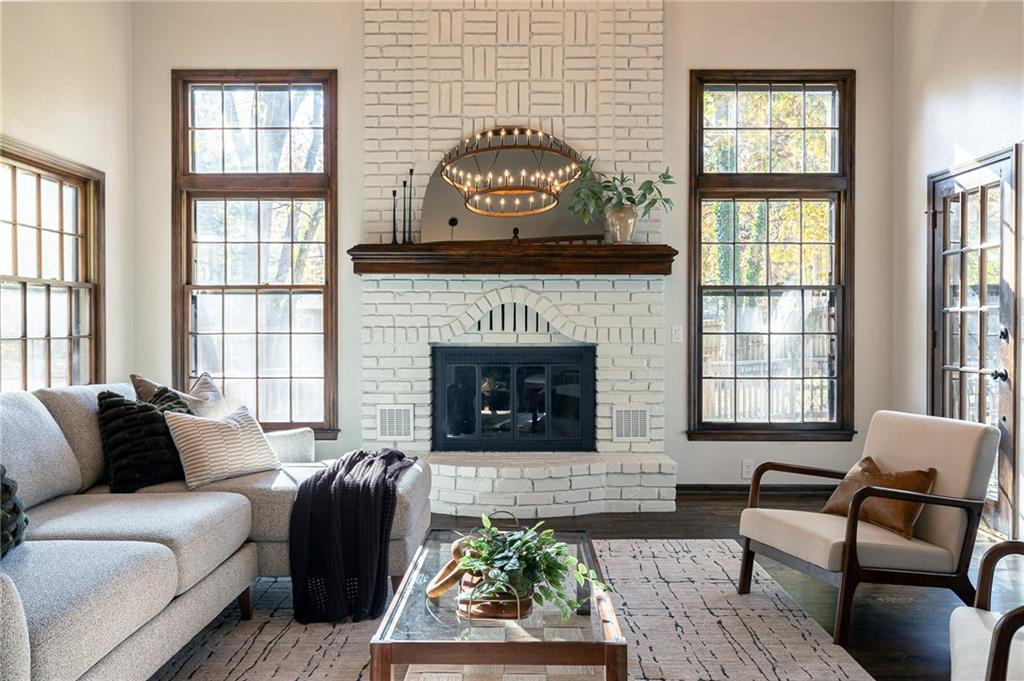 Welcome to this refined retreat in nestled in Claymont North. This 5-bedroom, 4.5-bath residence offers 4,000 square feet of thoughtfully designed living space, blending privacy, sophistication, and convenience with easy access to major highways and the airport. Step inside to soaring vaulted ceilings on the main level with recently installed hardwood flooring throughout. Recent upgrades include a stunning redesigned kitchen with quartz countertops, and a vaulted breakfast area surrounded by windows. Brand new appliances make daily living and entertaining a breeze. The luxurious primary suite features large windows, plush carpet, and a spa-like bath with tall cabinetry, soaker tub, walk-in shower, and his and hers walk-in closets. You will love the setting room between the master bedroom and bath where you can enjoy a cozy book by the fireplace. The expansive lower level is an entertainer’s dream with a gas start fireplace, full wet bar with sink and fridge, suspended garage for workshop and tornado shelter, and ample storage. Two secondary bedrooms offer flexibility and comfort for guests or teens that like to have their own space. Additional highlights include an upstairs loft for a children’s play place or office and two bedrooms with main floor laundry. Just minutes from the charm and amenities of Briarcliff Village—this exceptional home is not to be missed.